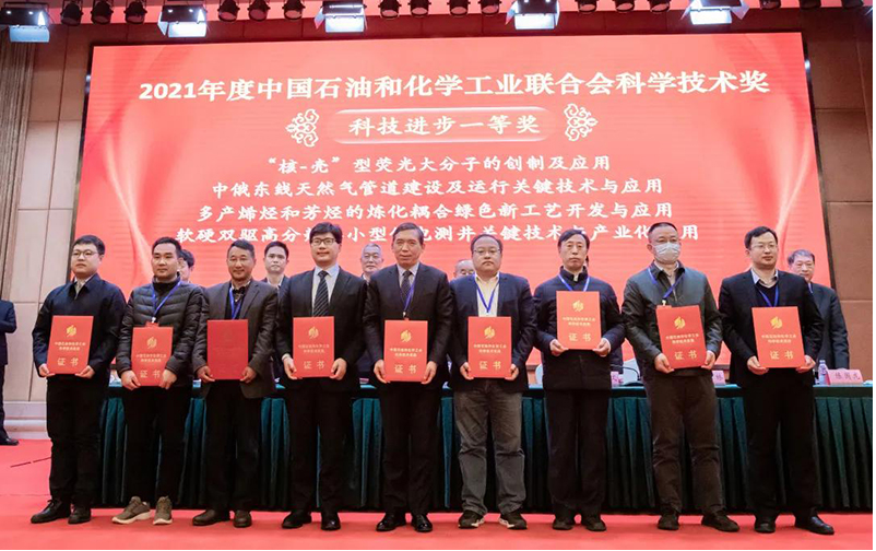 - 怡達(dá)化學(xué)公司副總經(jīng)理、董事會(huì)秘書蔡國(guó)慶先生和公司研發(fā)部、法務(wù)部部長(zhǎng)張虎先生赴武漢參加了近日召開的2021年度全國(guó)石油和化工科技創(chuàng)新大會(huì),這次大會(huì)由中國(guó)石油和化學(xué)工業(yè)聯(lián)合會(huì)主辦,會(huì)議表彰獎(jiǎng)勵(lì)了2021年度為全國(guó)石油化工領(lǐng)域科技創(chuàng)新做出突出貢獻(xiàn)的先進(jìn)集體和先進(jìn)個(gè)人,經(jīng)專家評(píng)審怡達(dá)化學(xué)和南京林業(yè)大學(xué)、常州大學(xué)等單位共同研究開發(fā)的“基于環(huán)氧烷烴定向開環(huán)反應(yīng)制備醇醚系列高附加值精細(xì)化學(xué)品產(chǎn)業(yè)化關(guān)鍵技術(shù)”被授予“科技進(jìn)步一等獎(jiǎng)”。