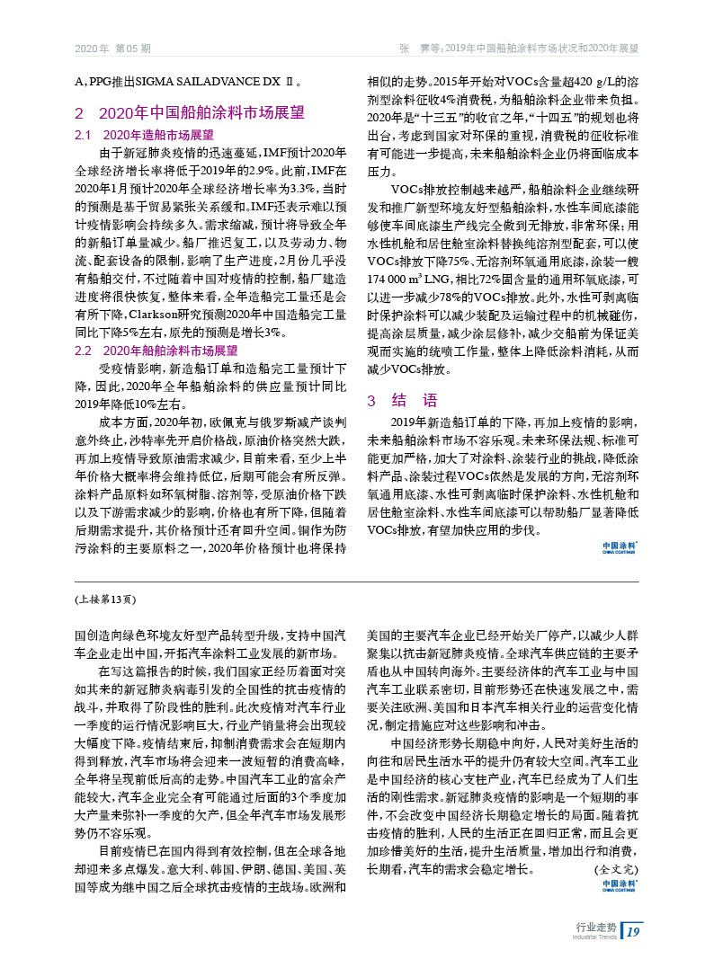 綜述了2019年中國造船市場及船舶涂料市場狀況,回顧梳理了2019年中國船舶涂料相關政策和標準,并對2020年中國船舶涂料市場進行了展望。