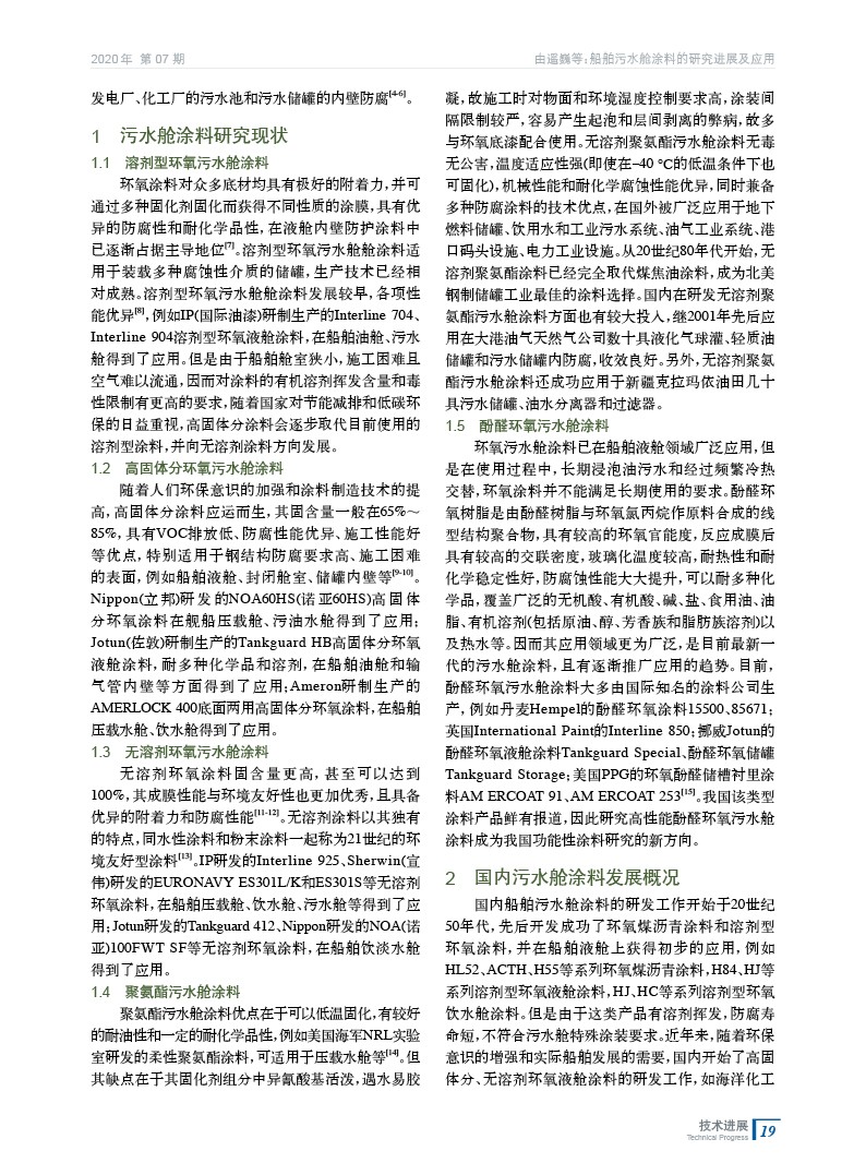 簡要介紹了國內外船舶污水艙涂料的研究進展,包括溶劑型環氧污水艙涂料、高固體分環氧污水艙涂料、無溶劑環氧污水艙涂料、聚氨酯污水艙涂料、酚醛環氧污水艙涂料;按表面處理和施工兩部分介紹了當前污水艙涂料的涂裝工藝;并對其實際應用情況進行了展示。