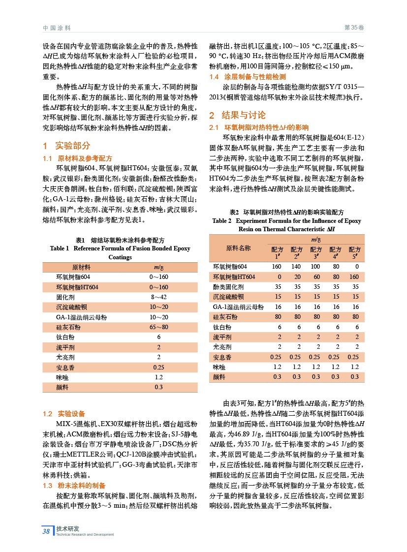 熔結環氧粉末涂料熱特性ΔH影響因素研究