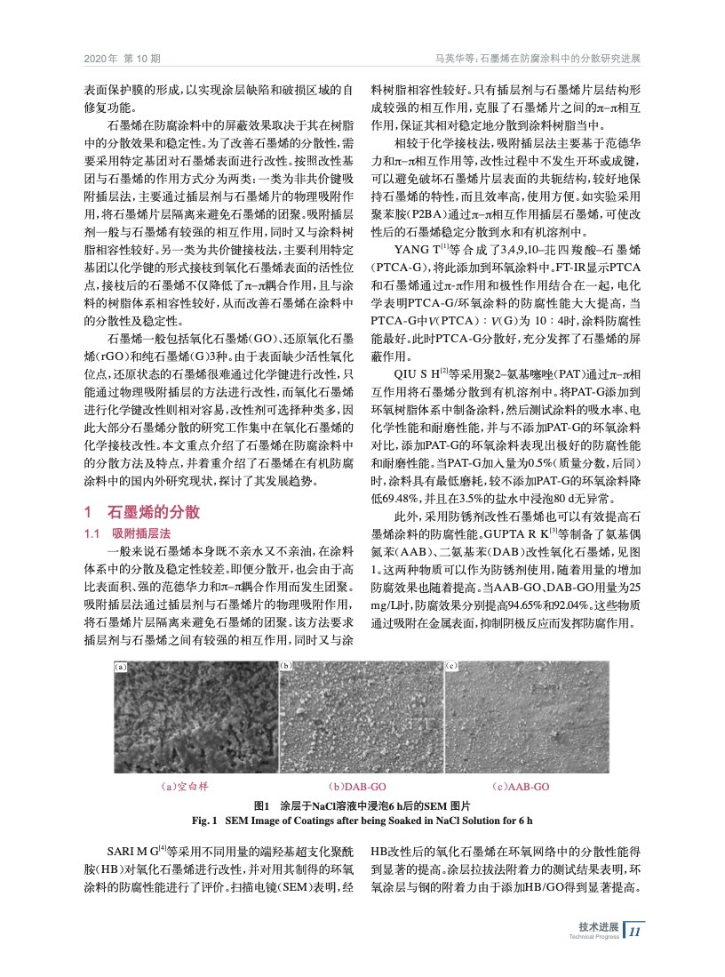 重點介紹了石墨烯在防腐涂料中的分散,闡述了石墨烯在有機防腐涂料中的國內外研究現狀、存在的問題,并對其發展趨勢進行了展望。