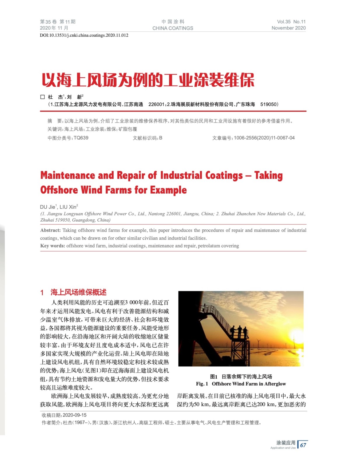 以海上風場為例,介紹了工業(yè)涂裝的維修保養(yǎng)程序,對其他類似的民用和工業(yè)用設施有著很好的參考借鑒作用。