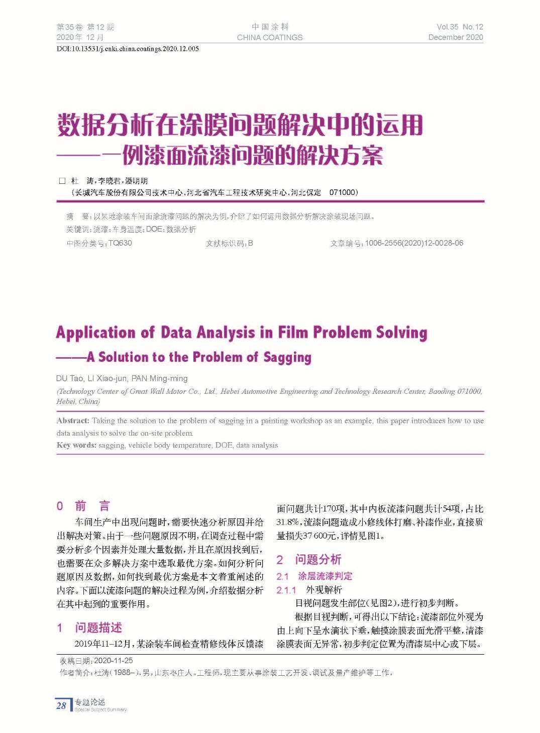 以某地涂裝車間面涂流漆問題的解決為例,介紹了如何運用數據分析解決涂裝現場問題。