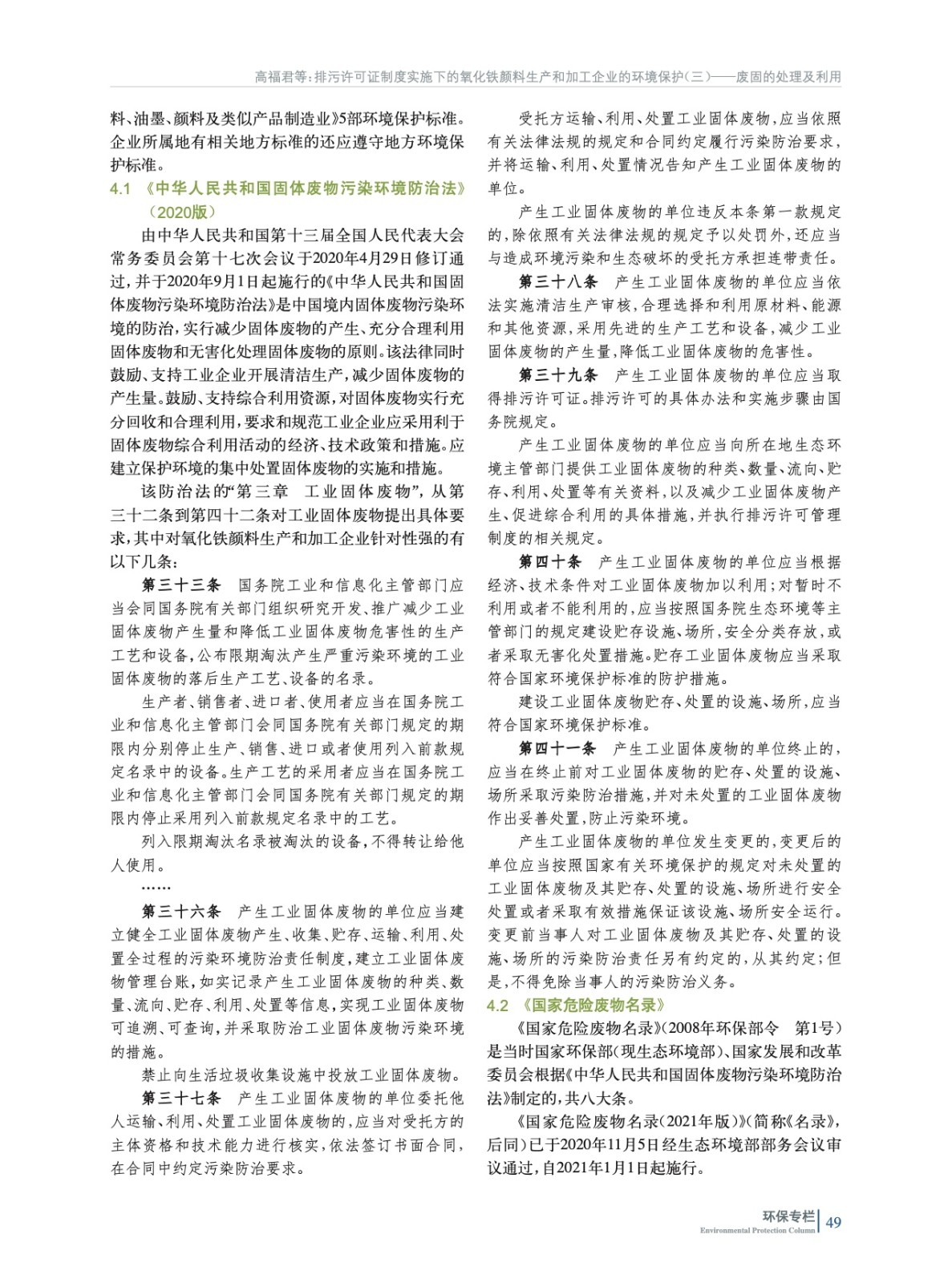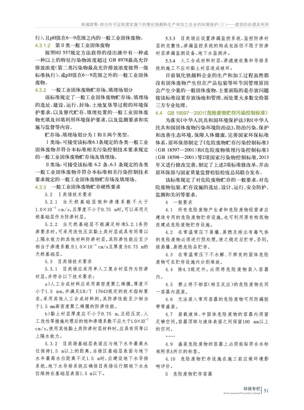 重點闡述了我國氧化鐵顏料生產和加工企業固體廢物處置應遵循的5部環境保護法規和標準所含項目和限值要求等,并為氧化鐵生產企業取得排污許可證后如何進行常態化管理指明了方向。