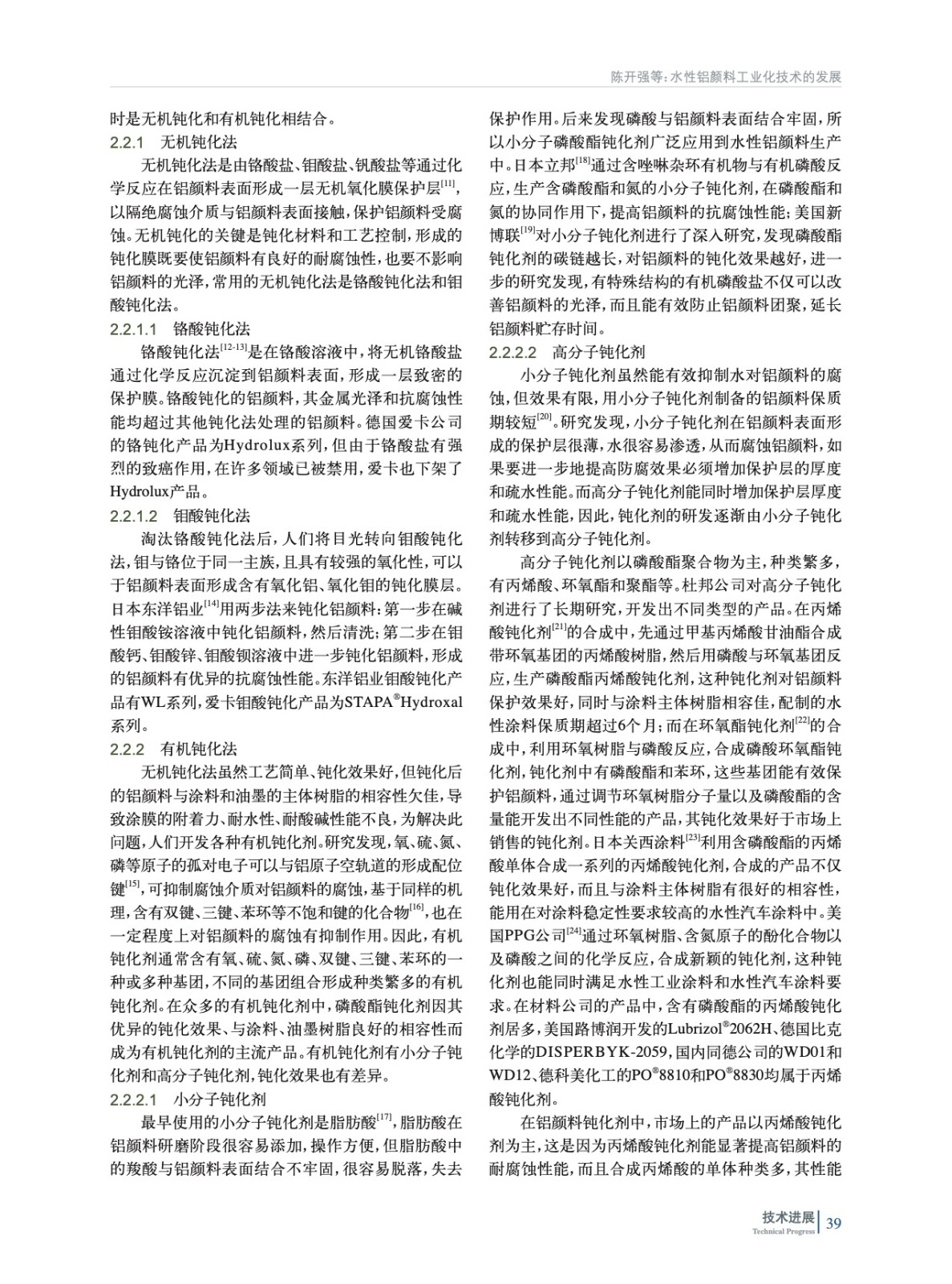 根據鋁顏料生產企業、涂料生產企業、材料生產企業的產品和技術,綜述了水性鋁顏料工業化技術的發展脈絡,介紹了硅包覆和鈍化工藝的發展及以后水性鋁顏料技術的發展方向。