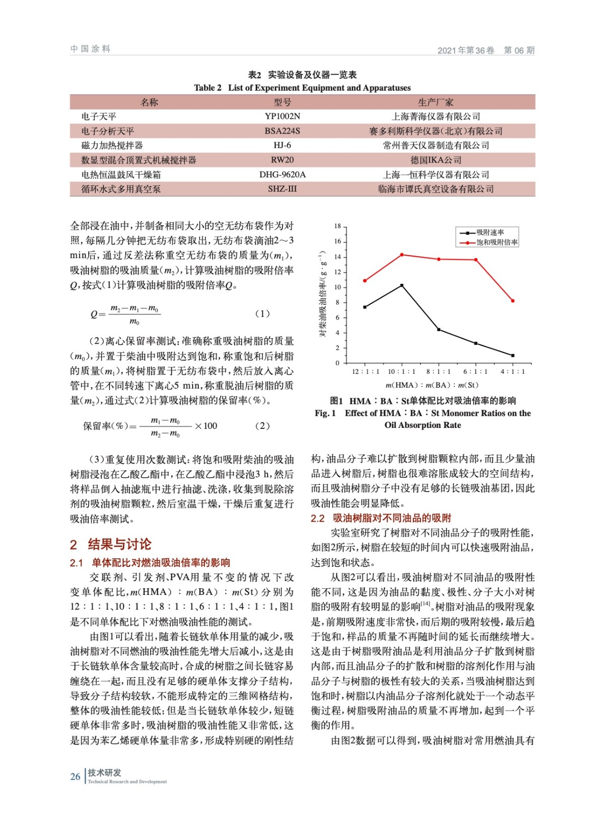 基于丙烯酸酯類高吸油樹脂的復合涂層制備及其性能研究