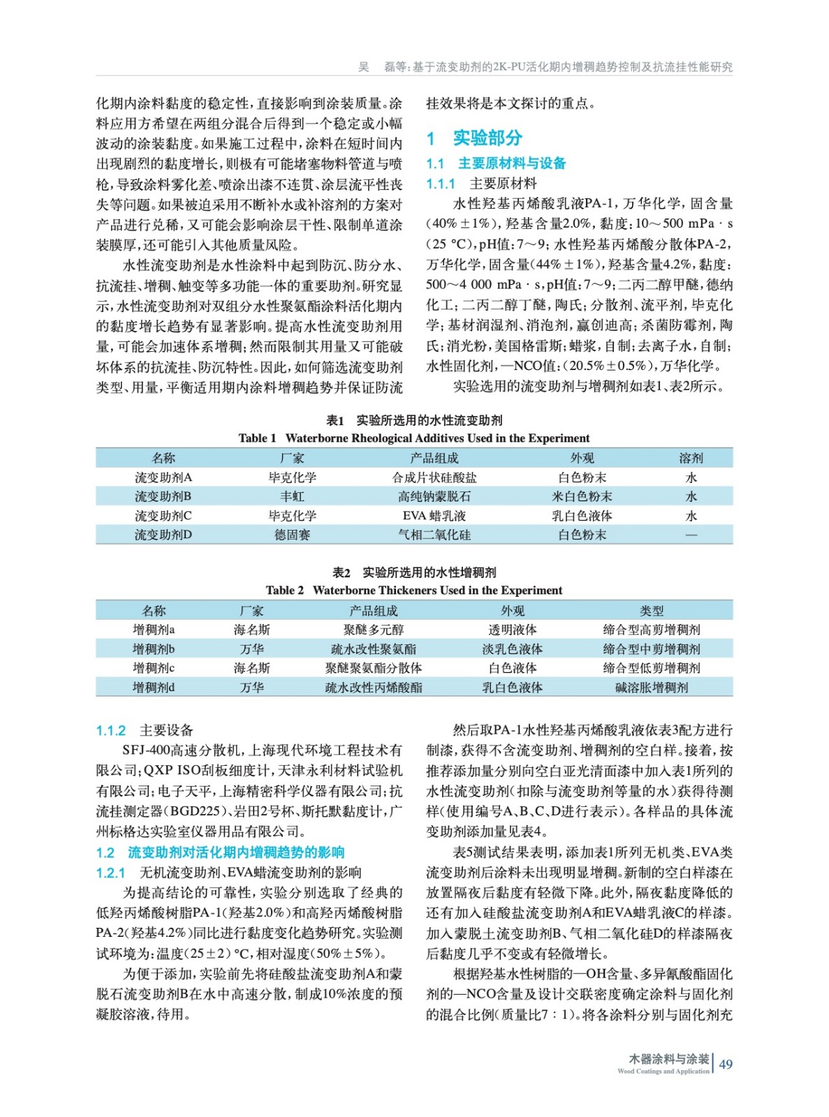 基于流變助劑的2K-PU活化期內(nèi)增稠趨勢(shì)控制及抗流掛性能研究