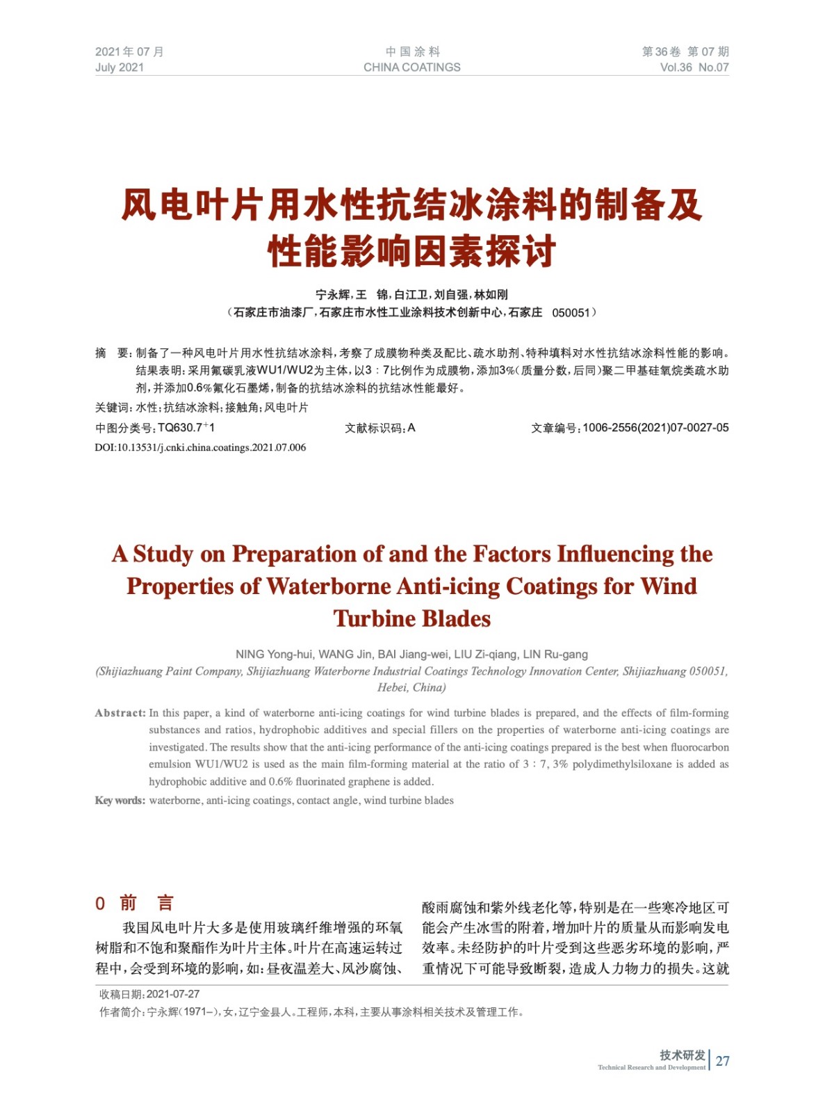 發表于2021-08-30 14:15:44| 次閱讀| 來源中國涂料| 作者寧永輝,王 錦,白江衛,劉自強,林如剛