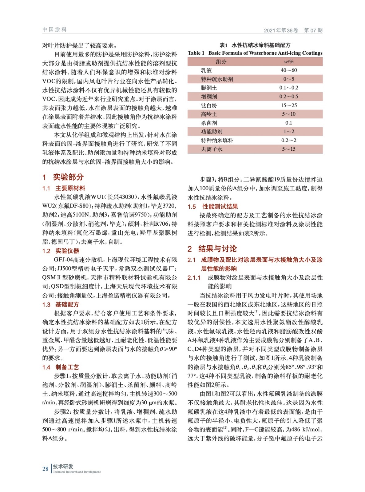 風電葉片用水性抗結冰涂料的制備及性能影響因素探討