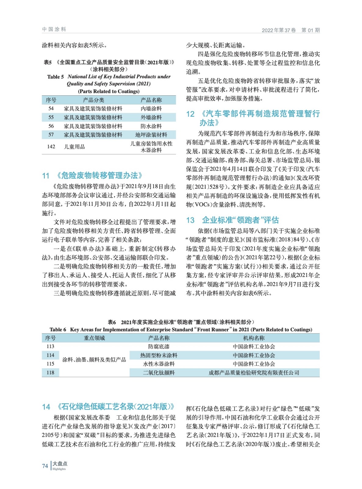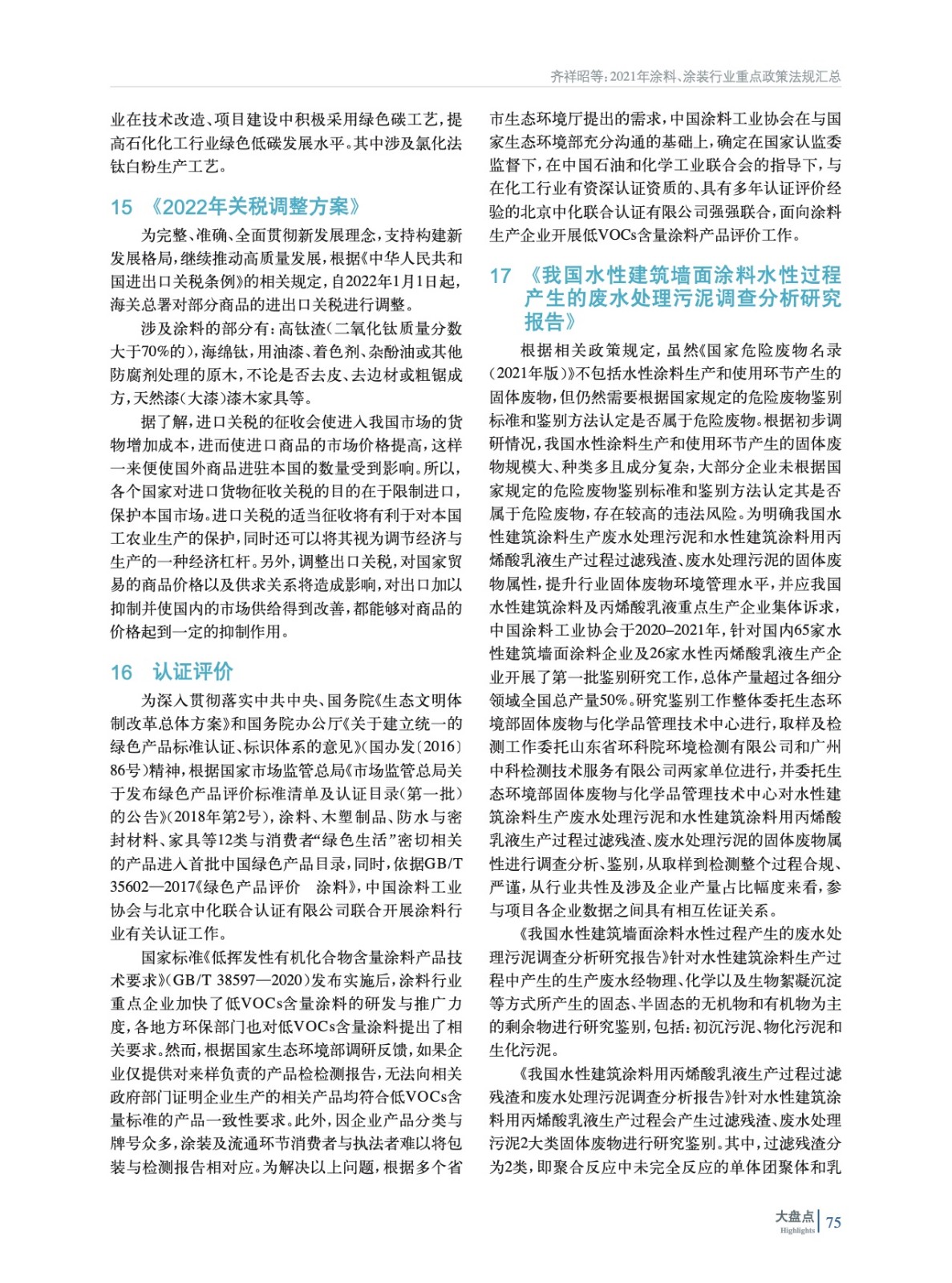 編者按:2021年國家出臺了多項政策法規,特別是在涂料、涂裝領域,“十四五”規劃、《秋冬季大氣污染綜合治理攻堅行動方案》、《環境保護綜合名錄(2021年版)》、碳排放管理文件等重點政策法規將對行業未來高質量發展起到重要的作用。