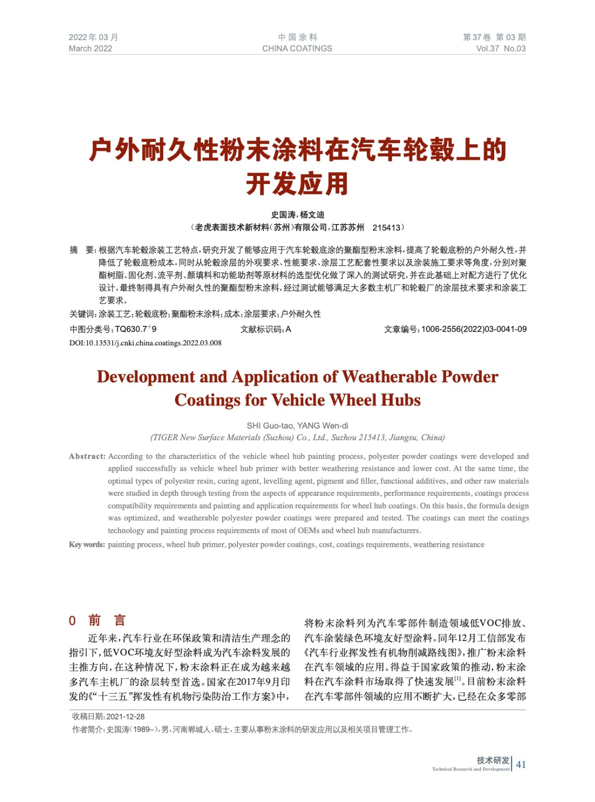 戶外耐久性粉末涂料在汽車輪轂上的開發(fā)應用