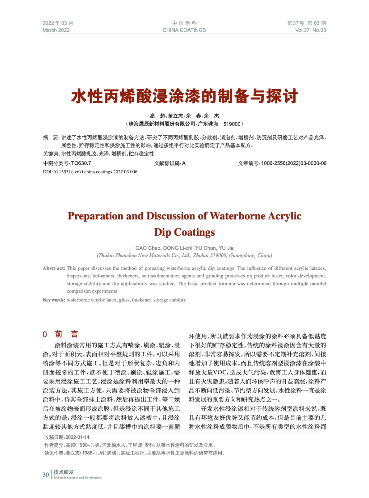 本文系作者@高 超,董立志,余 春,余 杰 授權中國涂料網發表,并經中國涂料網編輯,未經允許不得轉載,如需轉載請聯系chinacoatingnet@vip.163.com