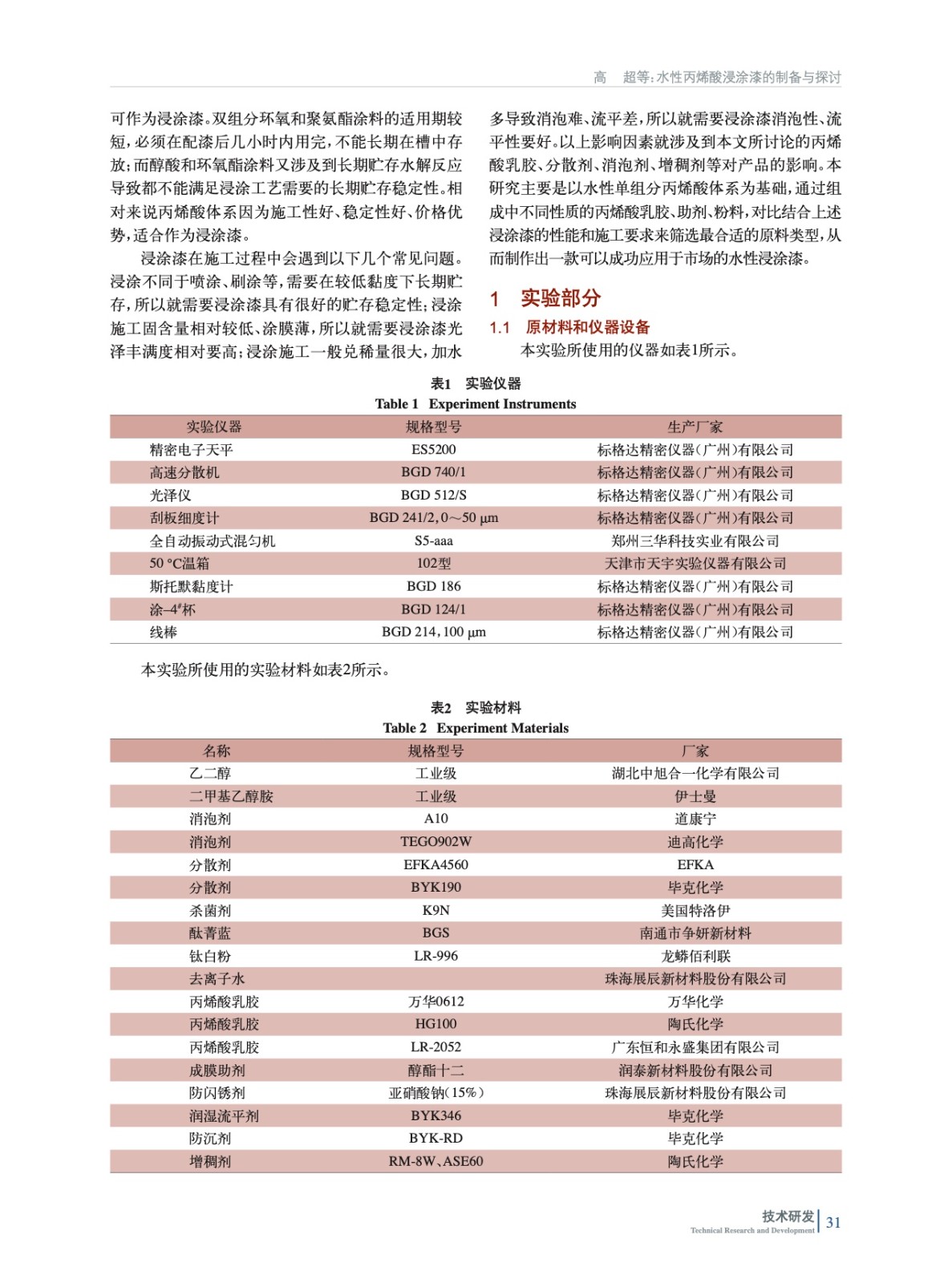 水性丙烯酸浸涂漆的制備與探討