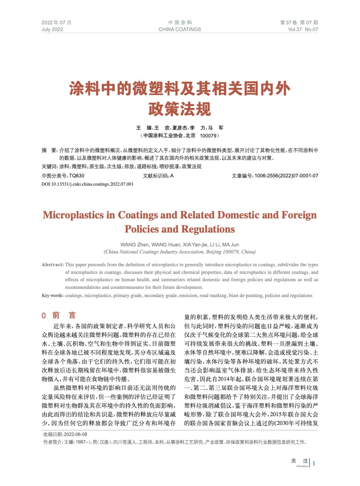 本文系作者@王 臻,王 歡,夏彥杰,李 力,馬 軍 授權中國涂料網發表,并經中國涂料網編輯,未經允許不得轉載,如需轉載請聯系chinacoatingnet@vip.163.com