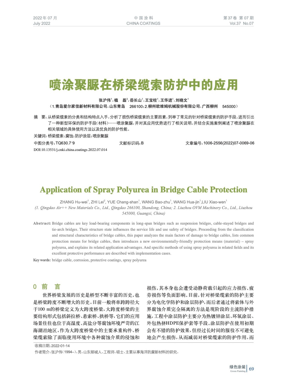 本文系作者@張滬偉,植 磊,岳長山,王寶柱,王華進,劉曉文 授權中國涂料網發表,并經中國涂料網編輯,未經允許不得轉載,如需轉載請聯系chinacoatingnet@vip.163.com