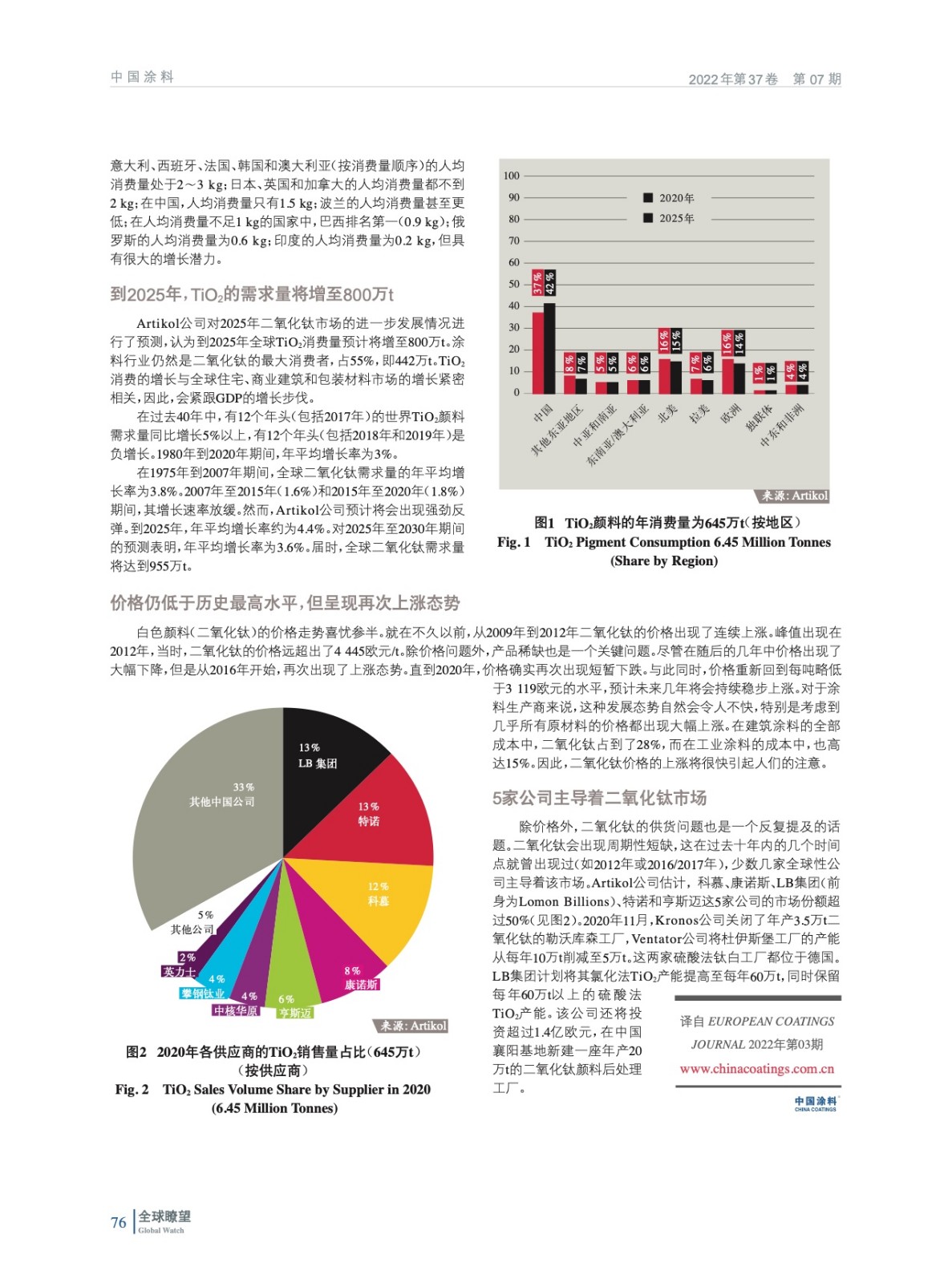 編者按:在涂料配方中,白色顏料“二氧化鈦”是一種必不可少的組分。因此,業界密切關注該領域的發展也就不足為奇了,預計對TiO2的需求量將持續增大,針對該顏料的挑戰也將會不斷增加,如價格、法規責任以及對供貨是否充足的擔憂。