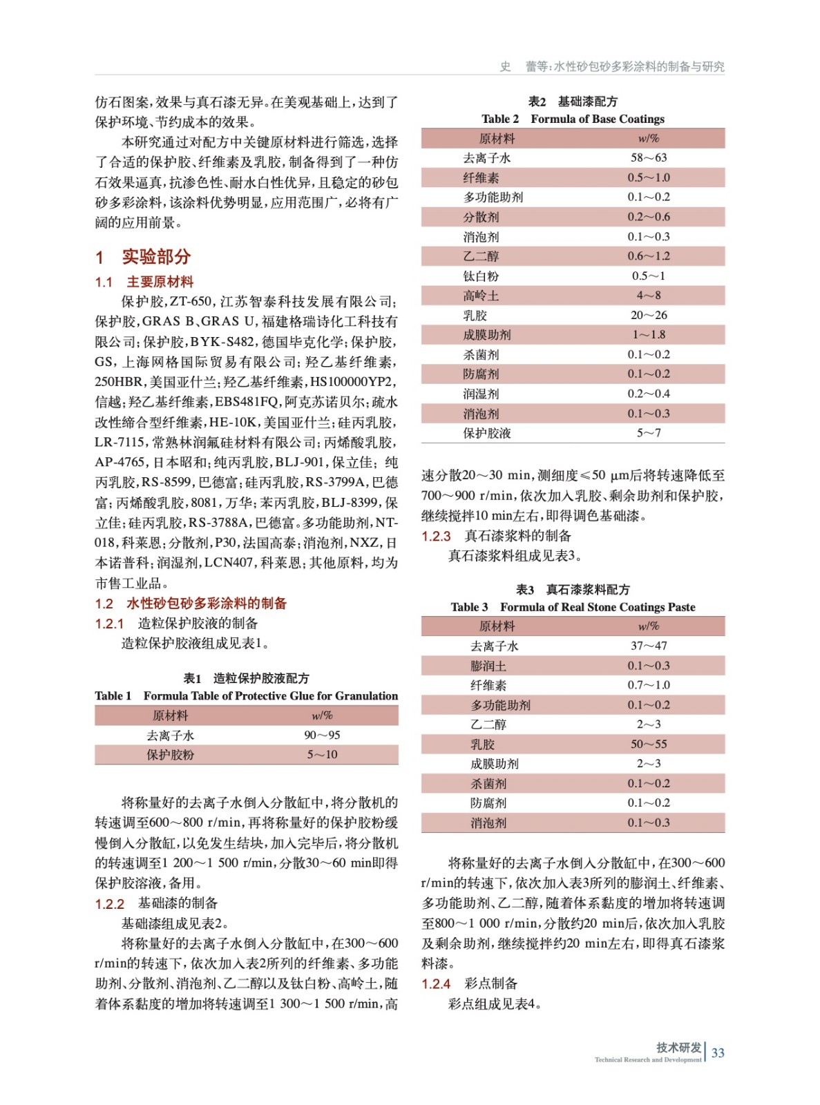 介紹了一種可以與真石漆相媲美的砂包砂涂料的制備,從保護膠、纖維素、乳膠方面平行實驗對比,最終確定了其最佳添加量。實驗結果表明,該砂包砂涂料,體系穩定,耐水白性優異,抗滲色性好,耐候性佳,施工美觀,凹凸感強,且較真石漆耗量少,價格低,前景可觀。