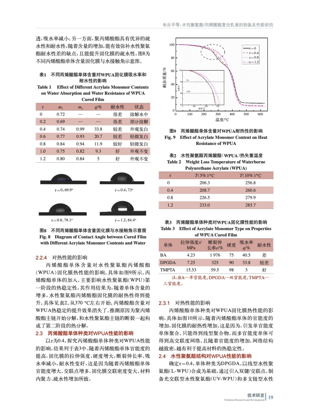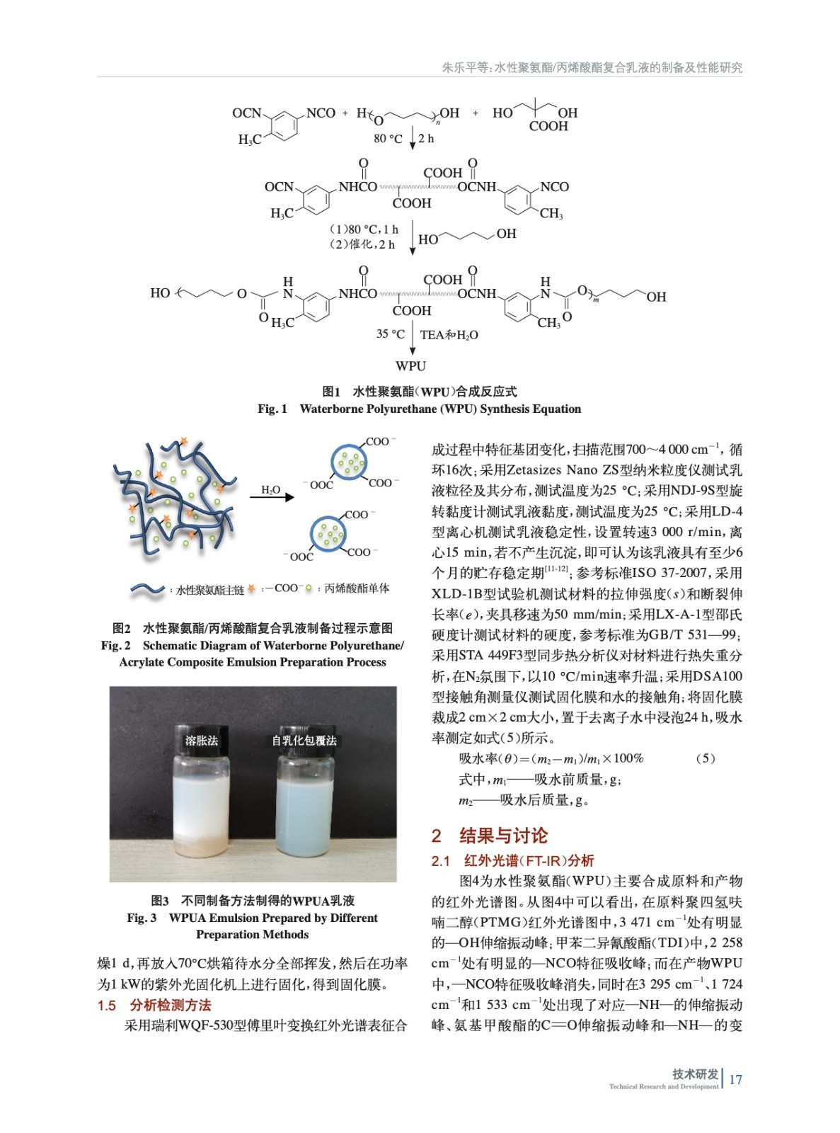 水性聚氨酯/丙烯酸酯復(fù)合乳液的制備及性能研究