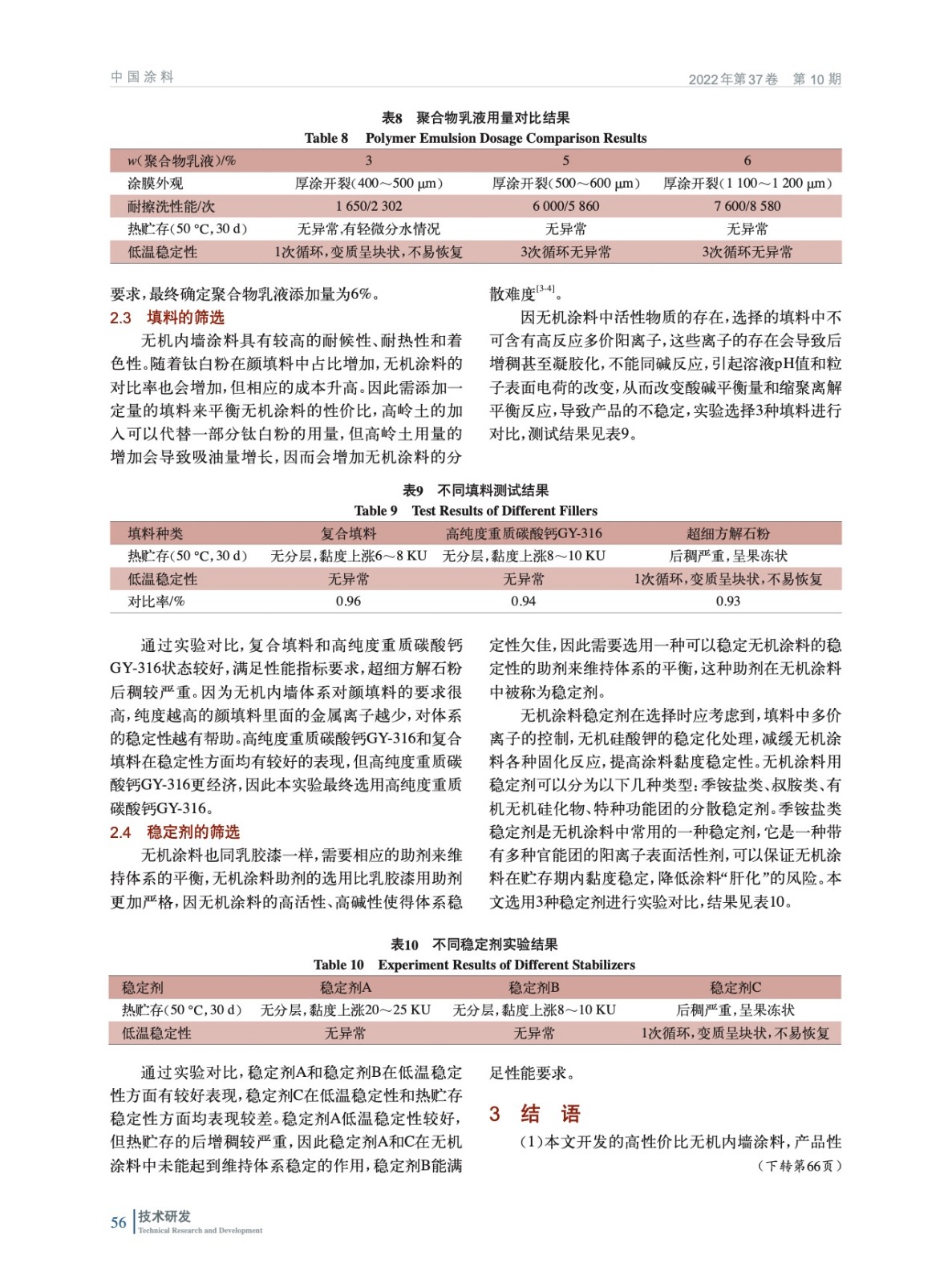 介紹了一種高性價比無機內墻涂料的制備,并對無機涂料的制備以及成膜物的種類和用量、顏填料、穩定劑的種類對產品穩定的影響進行了討論,從而開發出一款高性價比的無機涂料產品,使得無機涂料可應用在更廣泛的領域。