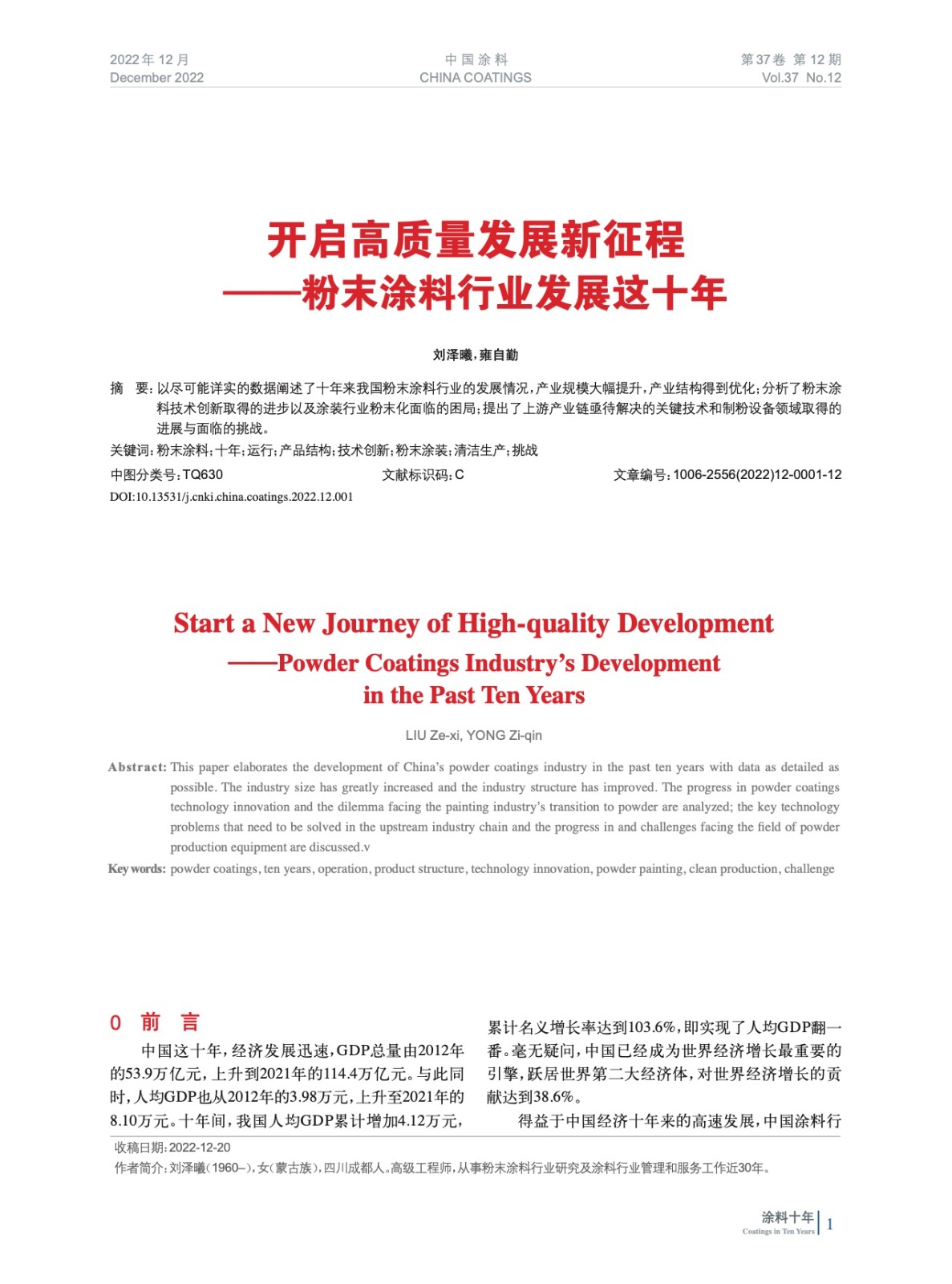 開啟高質量發展新征程——粉末涂料行業發展這十年