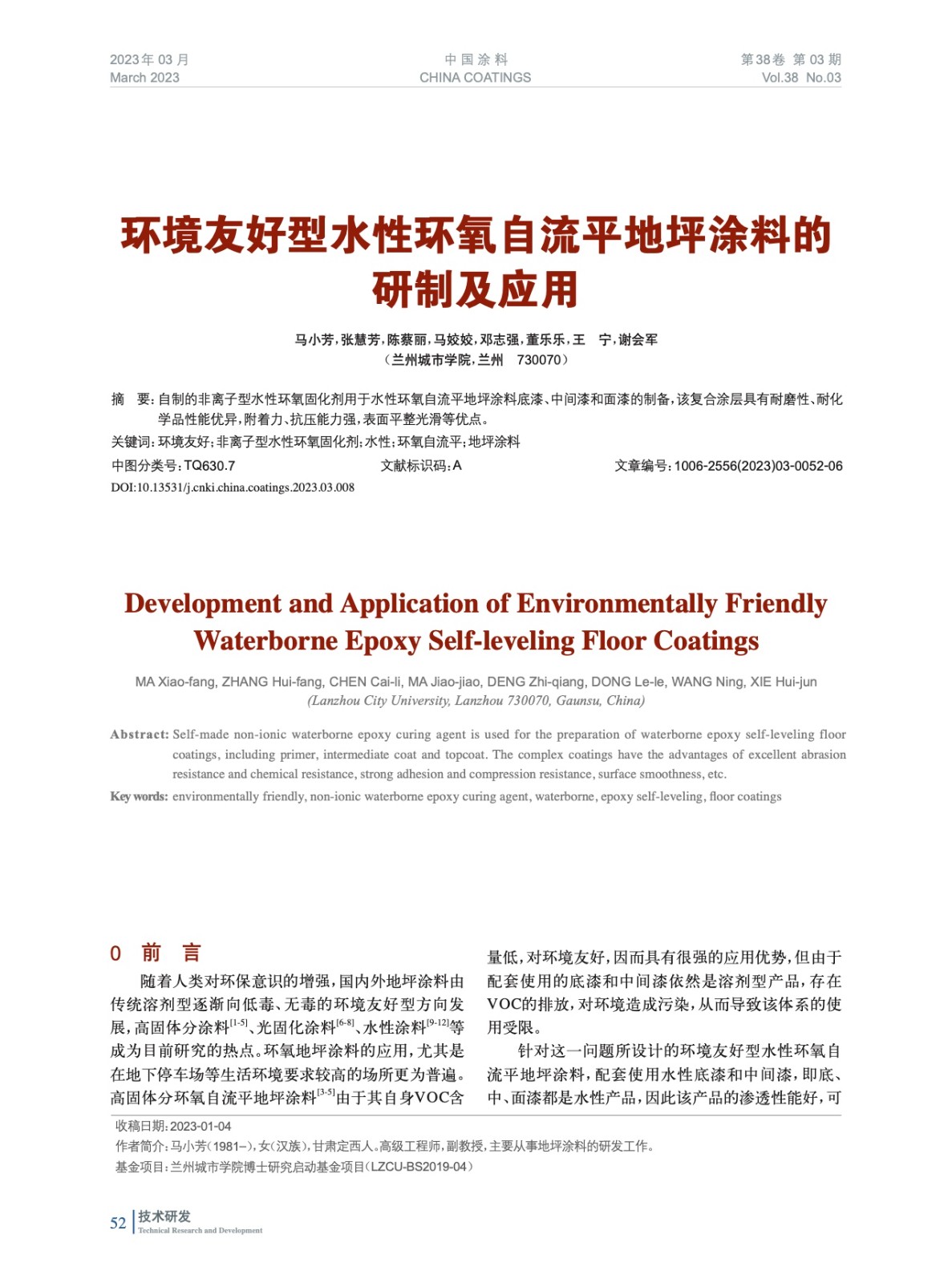 環境友好型水性環氧自流平地坪涂料的研制及應用