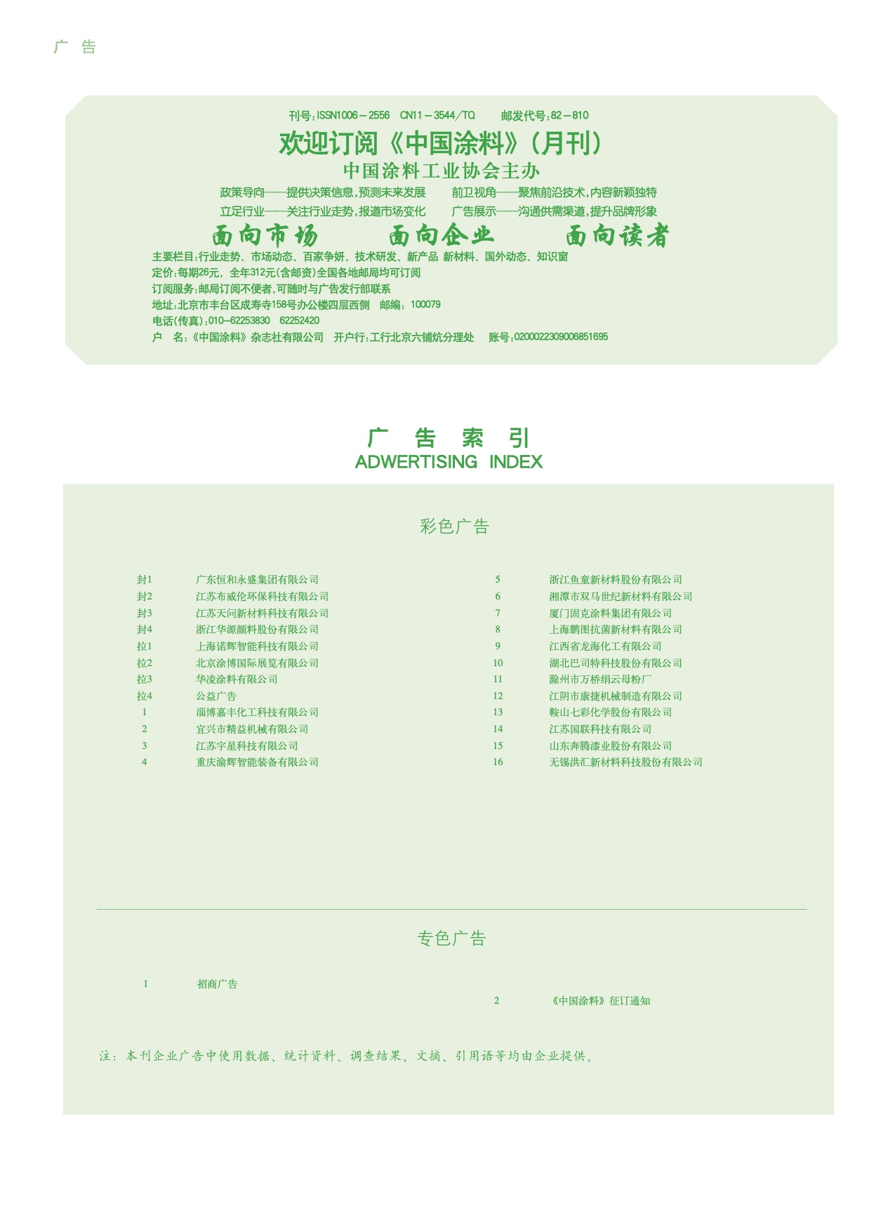 主辦:《中國涂料》雜志社有限公司 電話:010-62252368