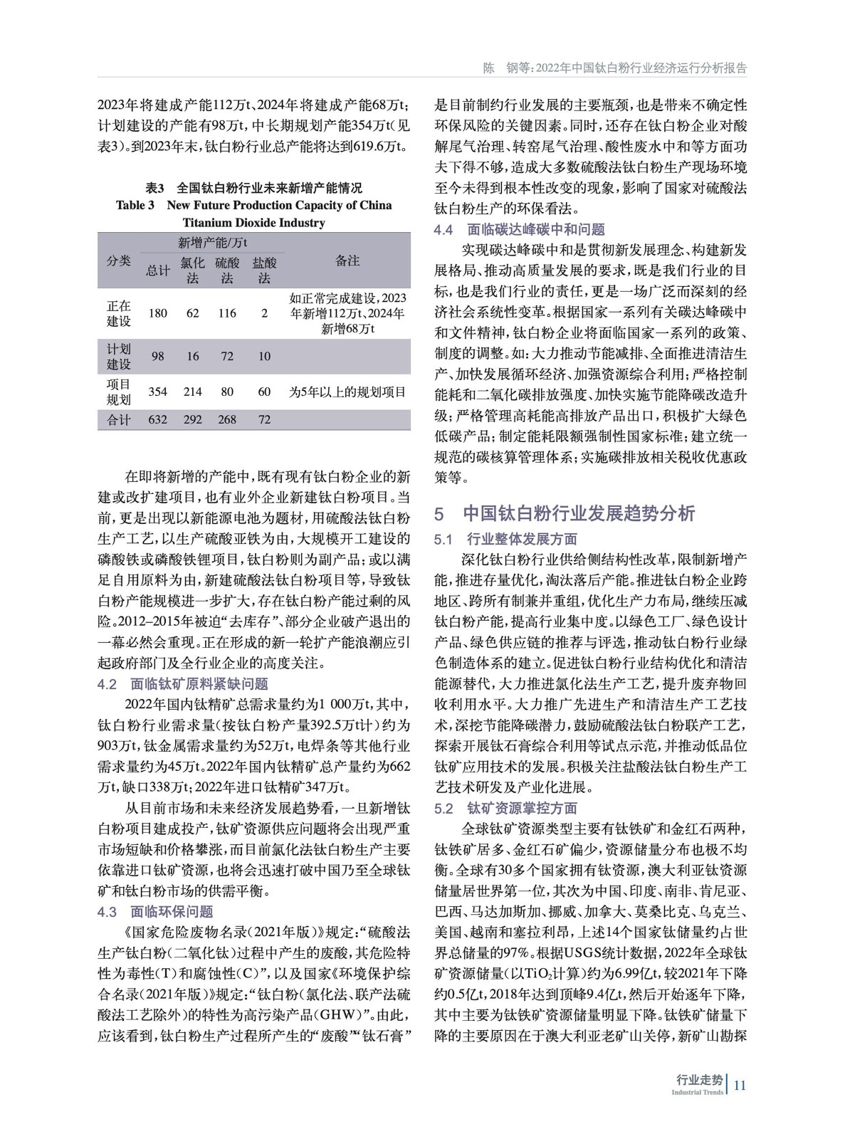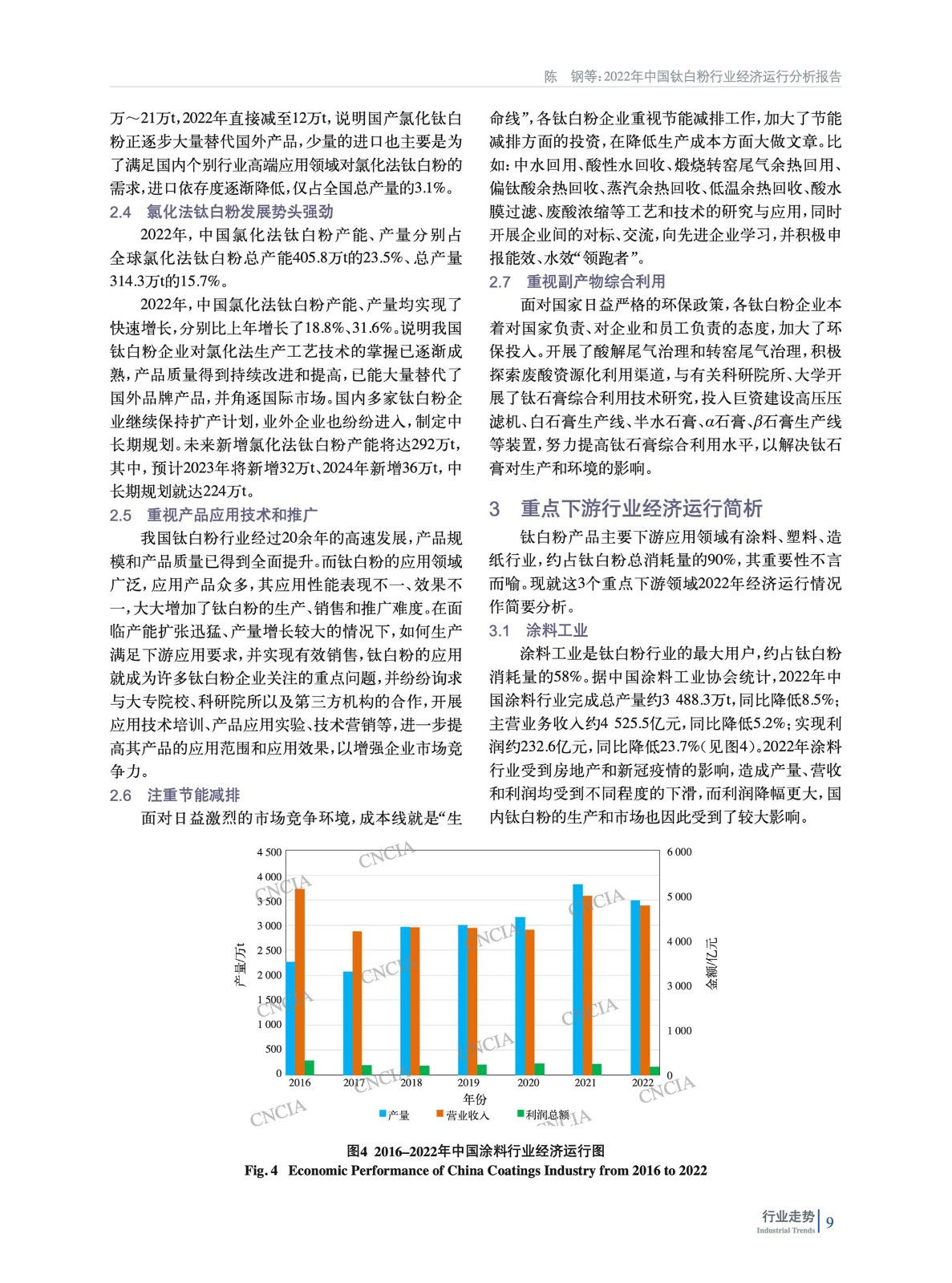 分析了2022年中國鈦白粉行業生產、進出口、表觀消費量等數據,總結了行業運行特點,簡析了鈦白粉行業重點下游行業——涂料、塑料、造紙行業運行情況,指出了目前中國鈦白粉行業面臨的問題,并指明了未來行業發展趨勢。