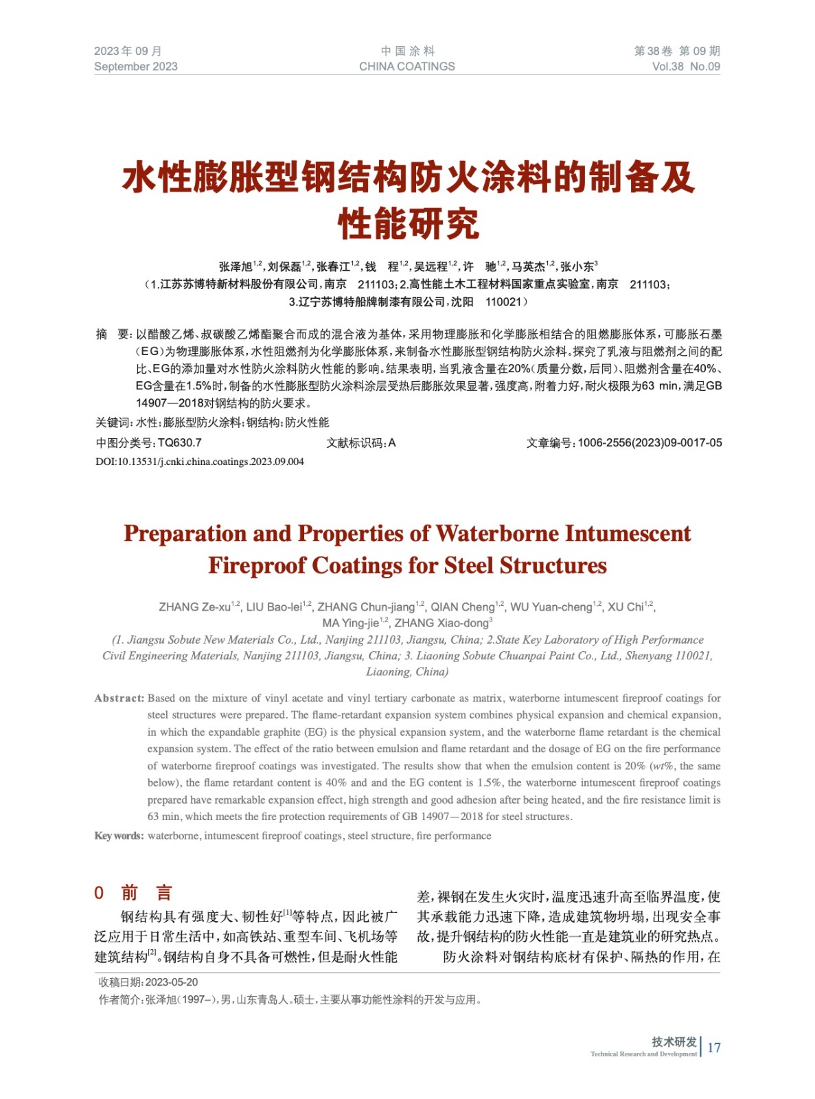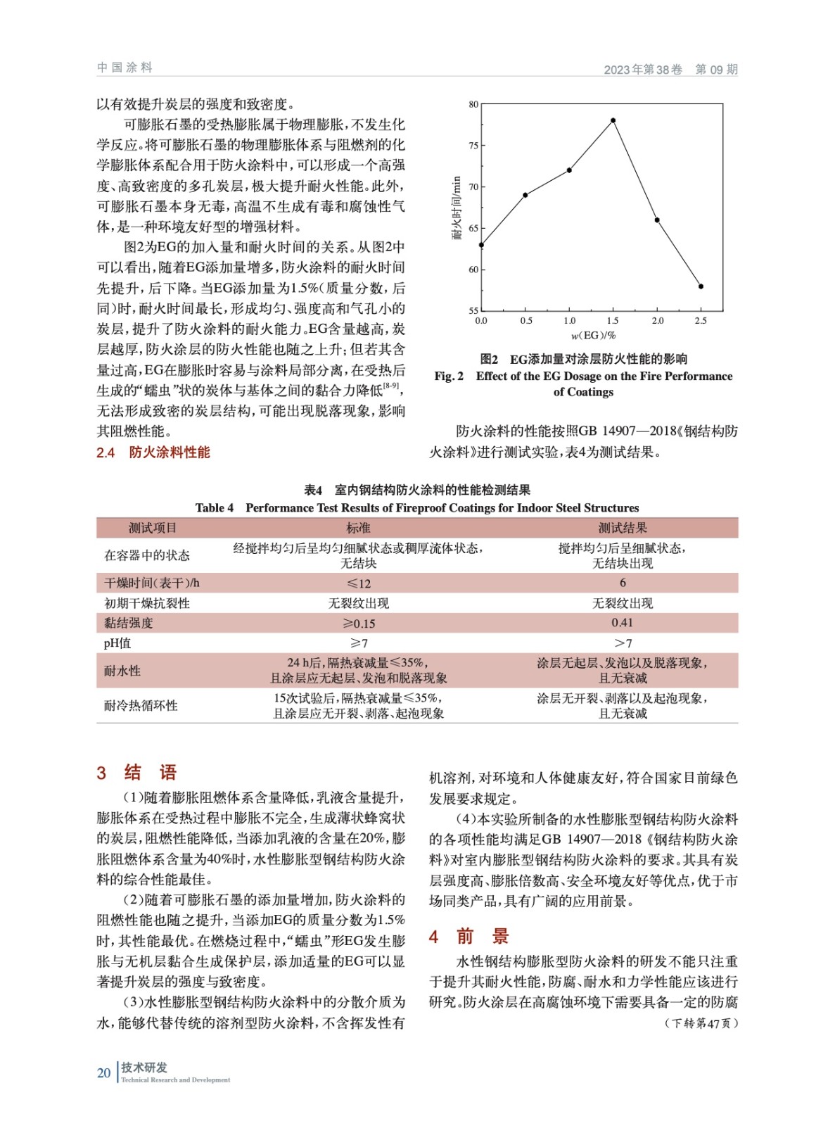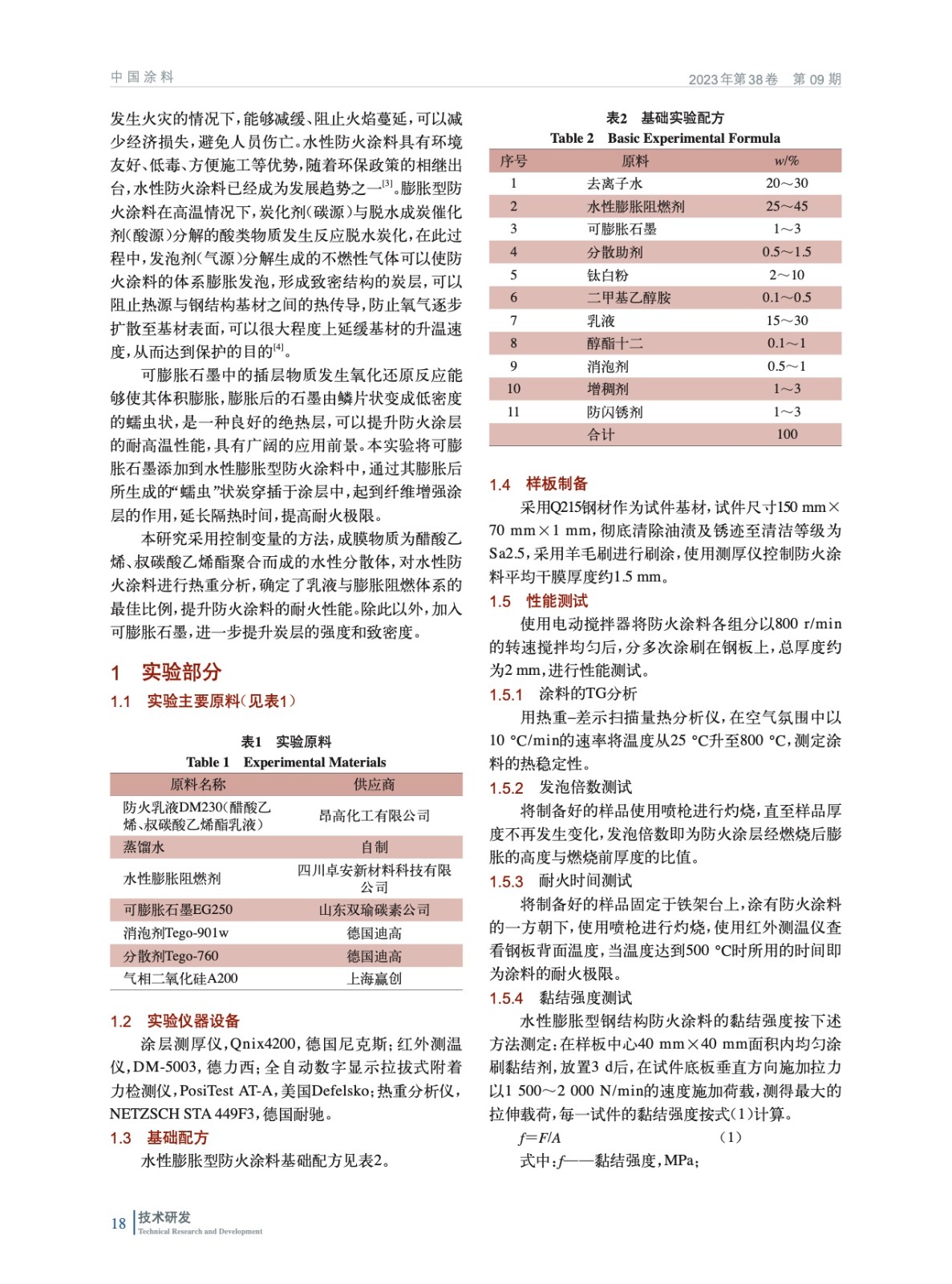 水性膨脹型鋼結構防火涂料的制備及性能研究