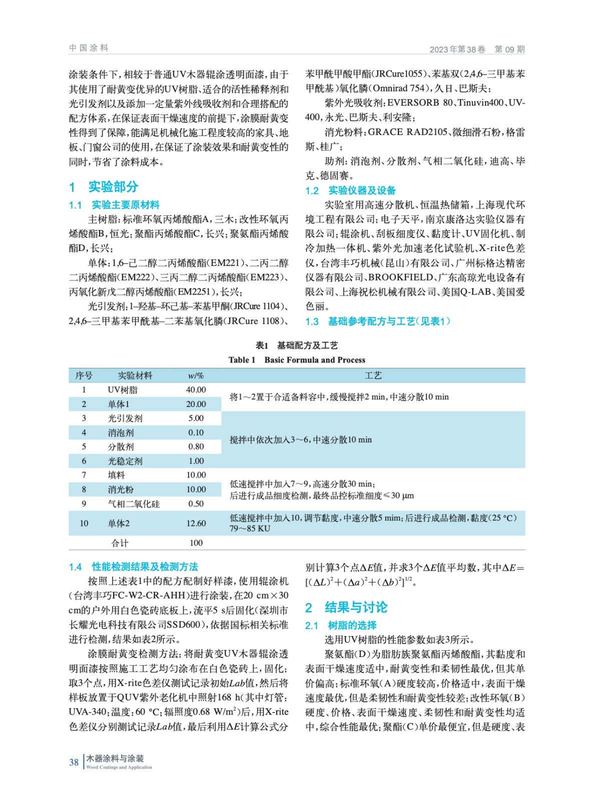 耐黃變UV木器輥涂透明面漆的研究與應用