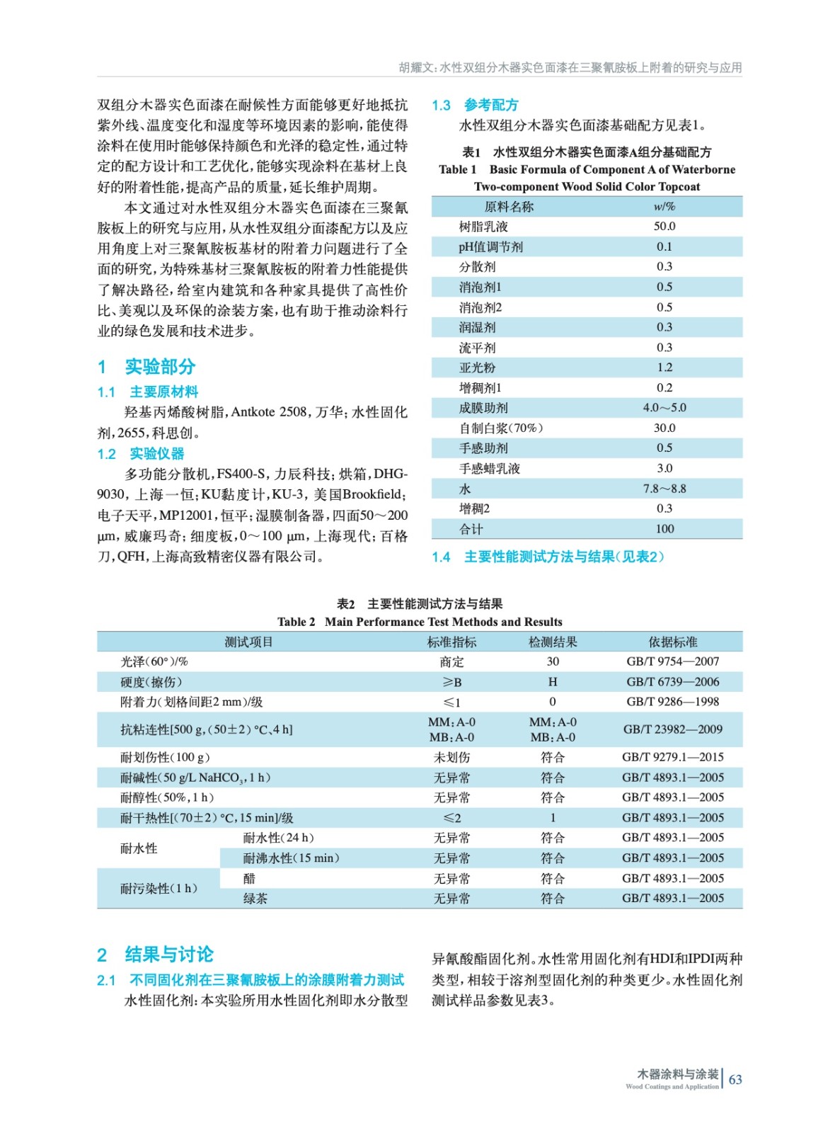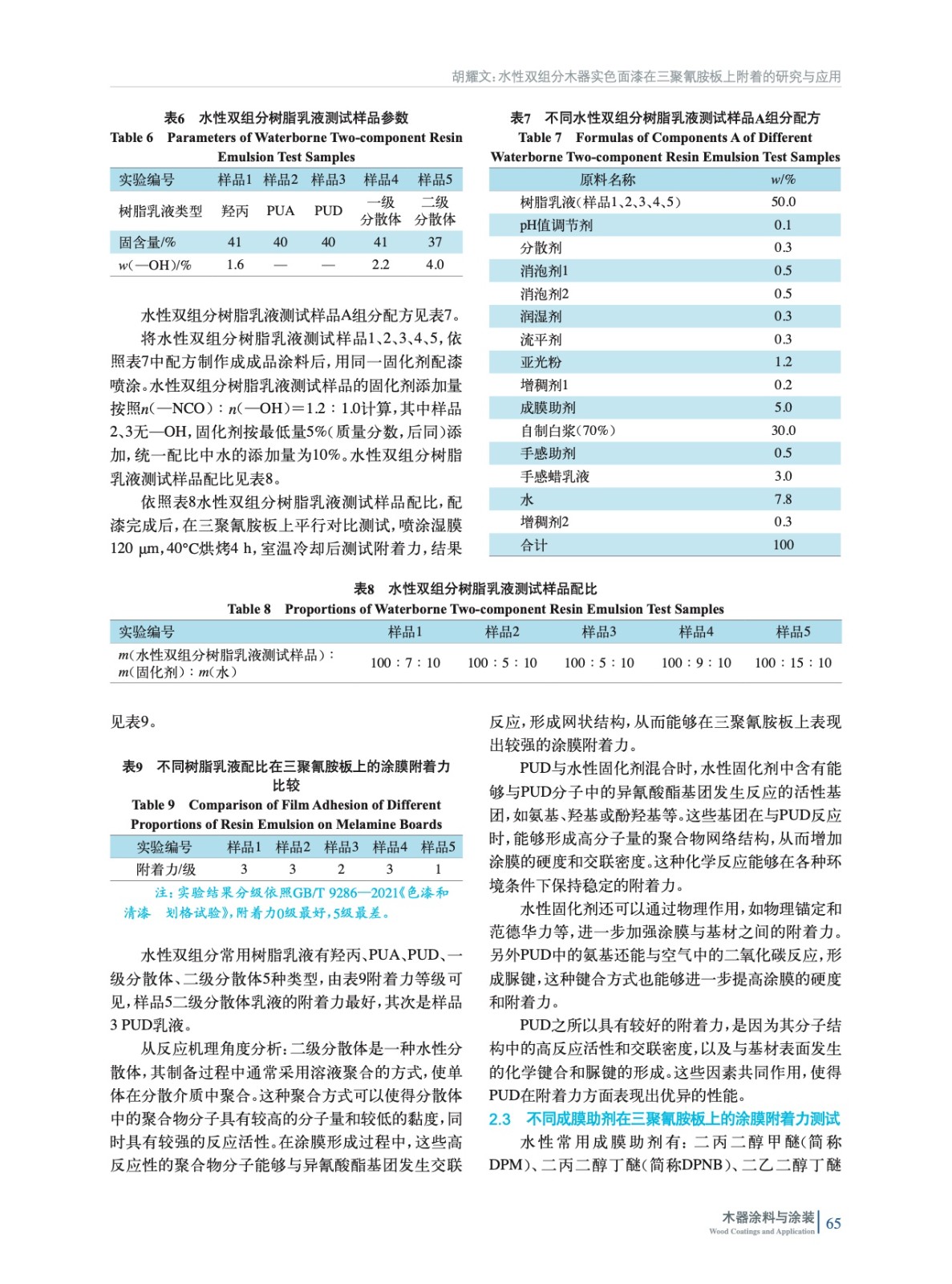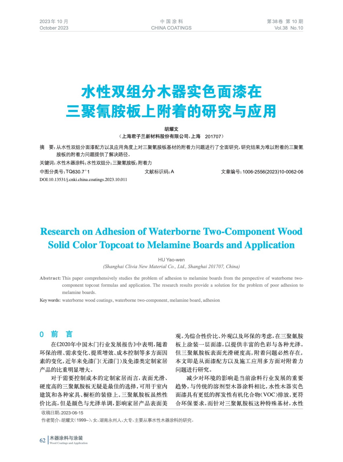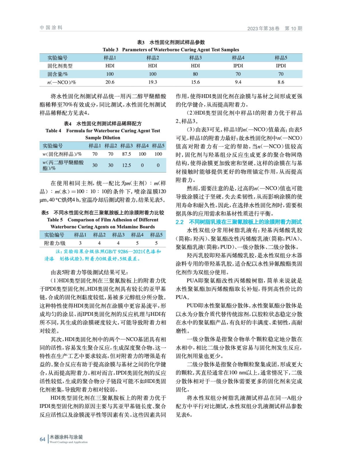 水性雙組分木器實(shí)色面漆在三聚氰胺板上附著的研究與應(yīng)用