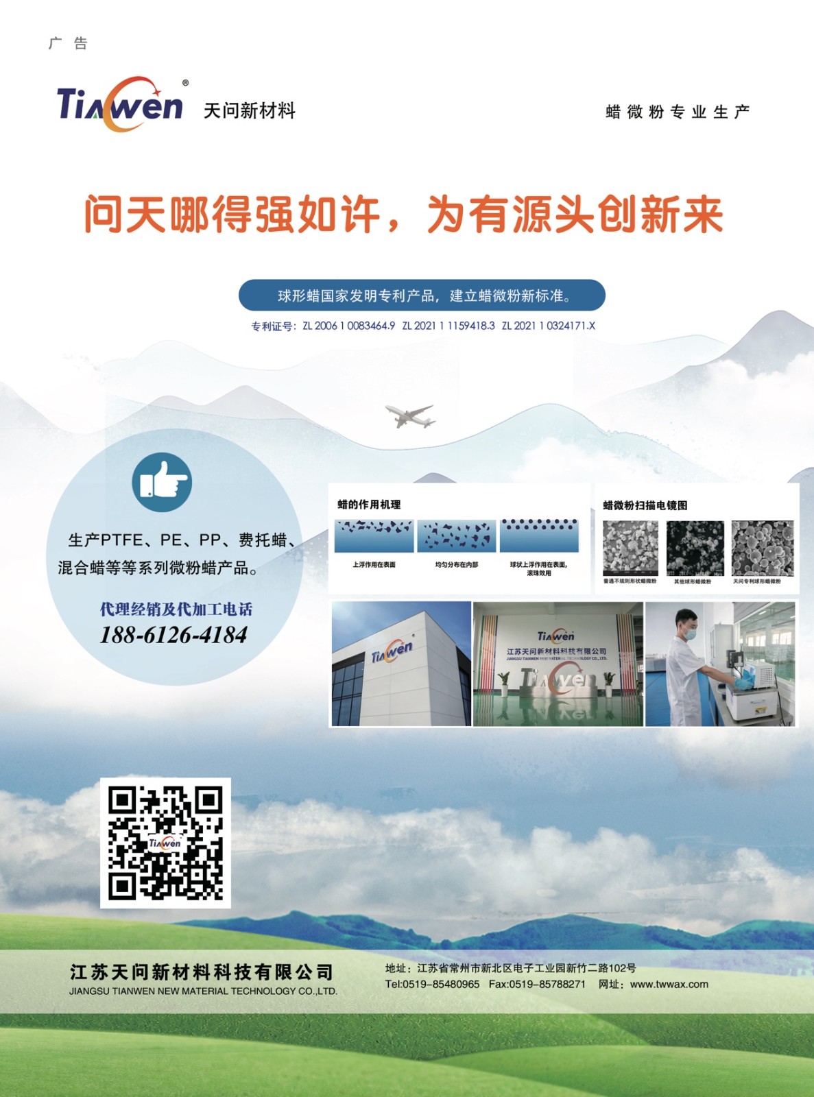 封1:江蘇布威倫環(huán)保科技有限公司;封2:贏創(chuàng)特種化學(上海)有限公司;封3:江蘇天問新材料科技有限公司;封4:浙江華源顏料股份有限公司