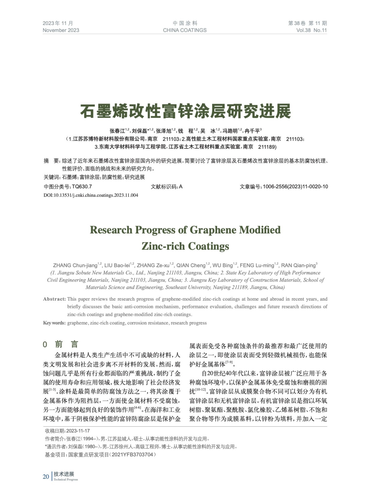 本文系作者@張春江,劉保磊,張澤旭,錢 程,吳 冰,馮路明,冉千平 授權中國涂料網發表,并經中國涂料網編輯,未經允許不得轉載,如需轉載請聯系chinacoatingnet@vip.163.com