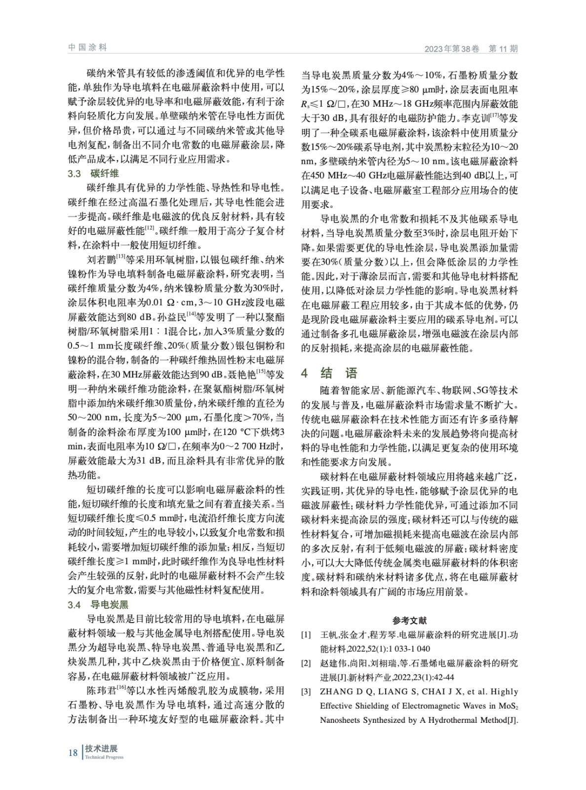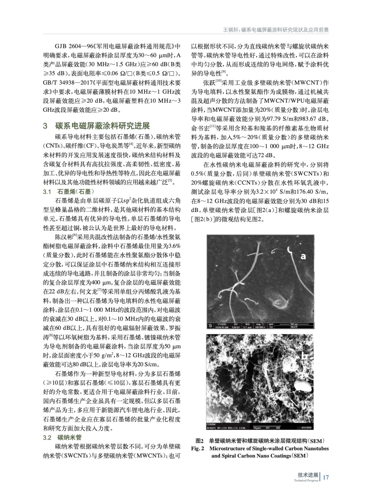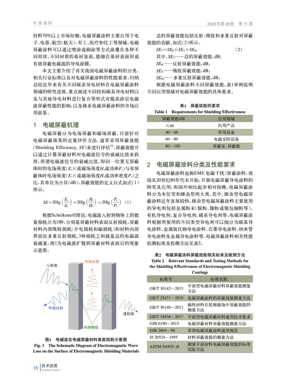 主要介紹了我國電磁屏蔽涂料的分類、相關行業標準以及對電磁屏蔽涂料的性能要求。歸納總結近年來有關不同碳系導電材料在電磁屏蔽涂料領域的研究進展,重點闡述不同結構碳系導電材料以及與其他導電材料進行復合等形式對提高涂層電磁波屏蔽性能的影響。