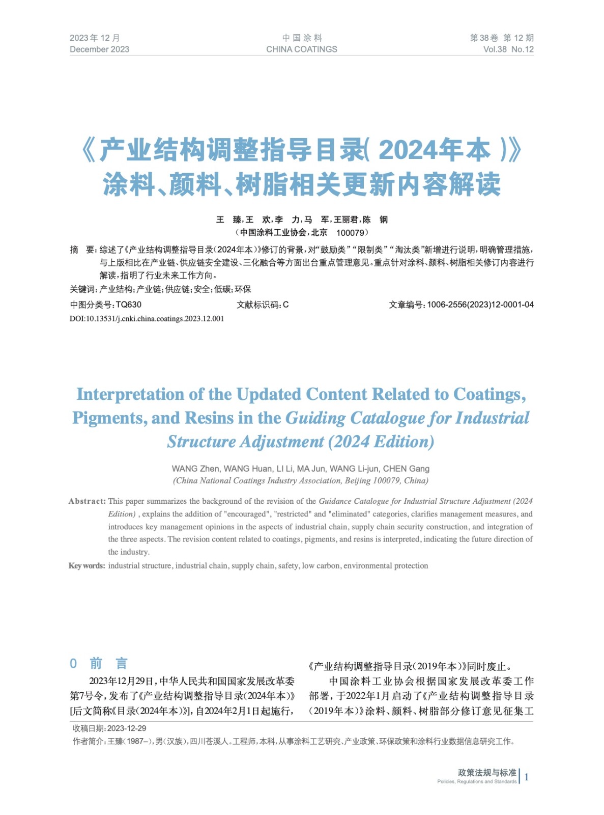 《產業結構調整指導目錄(2024年本)》涂料、顏料、樹脂相關更新內容解讀