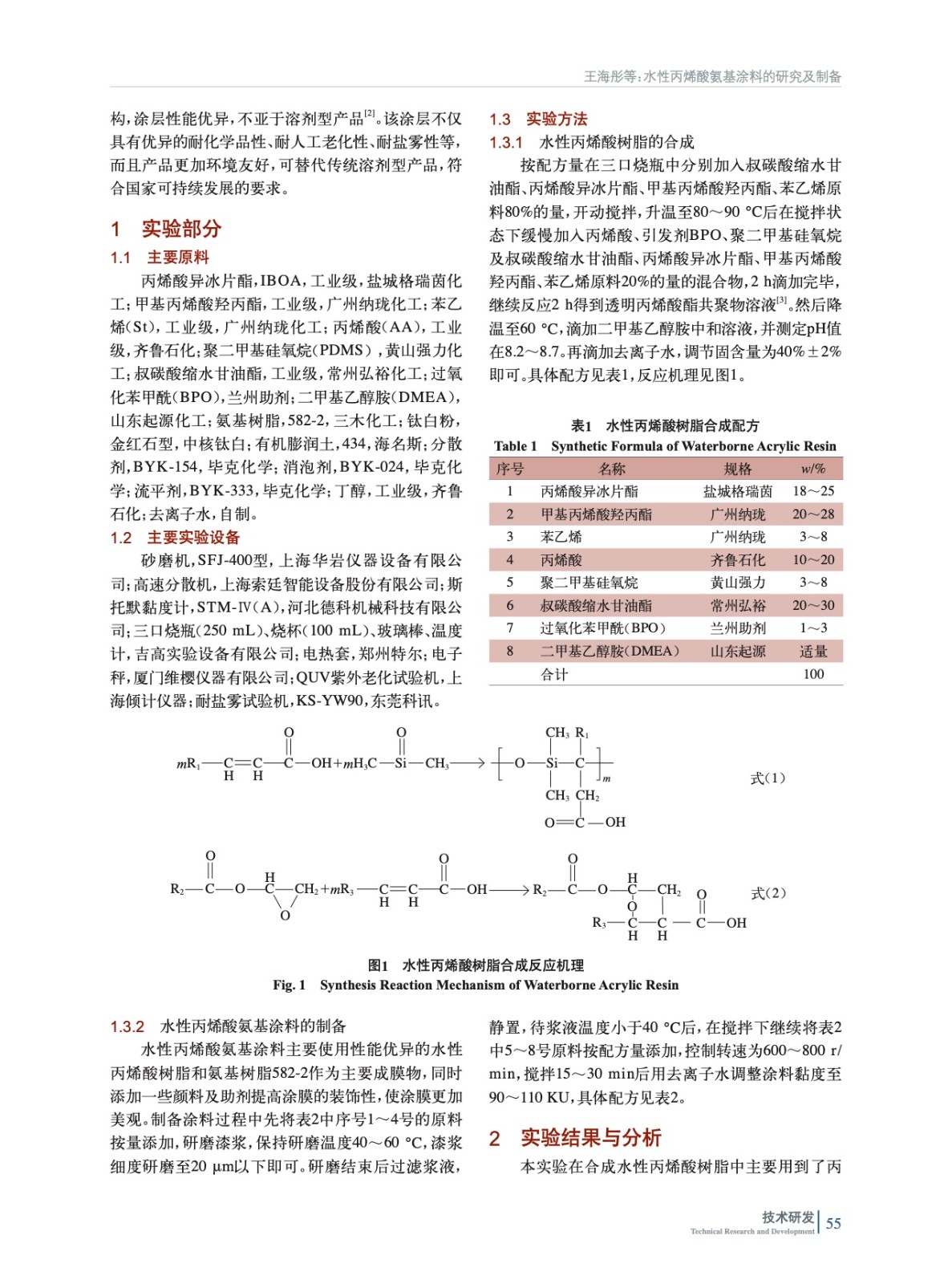 摘要:通過使用丙烯酸異冰片酯、甲基丙烯酸羥丙酯、叔碳酸縮水甘油酯等性能優(yōu)異單體合成水性羥基丙烯酸樹脂,并在體系中引入Si—O鍵,進而與氨基樹脂在一定溫度下交聯(lián)固化,可以使涂膜形成高度交聯(lián)的網(wǎng)狀結構,進而形成致密的保護涂層,涂層具有優(yōu)良的耐化學品性、耐酸堿性、耐人工老化性、耐鹽霧性等。