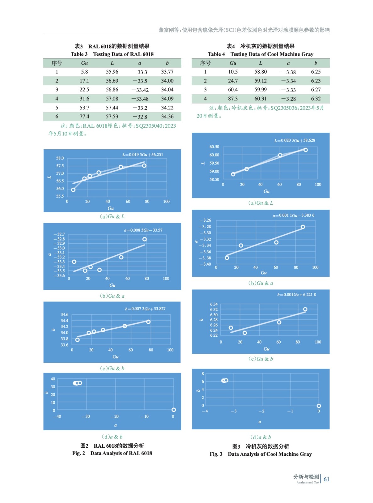 當用包含鏡像光澤(SCI)色差儀測色時,光澤會對涂膜顏色明度(L值)有影響。通過實驗總結出顏色明度L值與光澤的函數關系,通過此函數關系可修正光澤對SCI色差儀配色及測色的影響。
