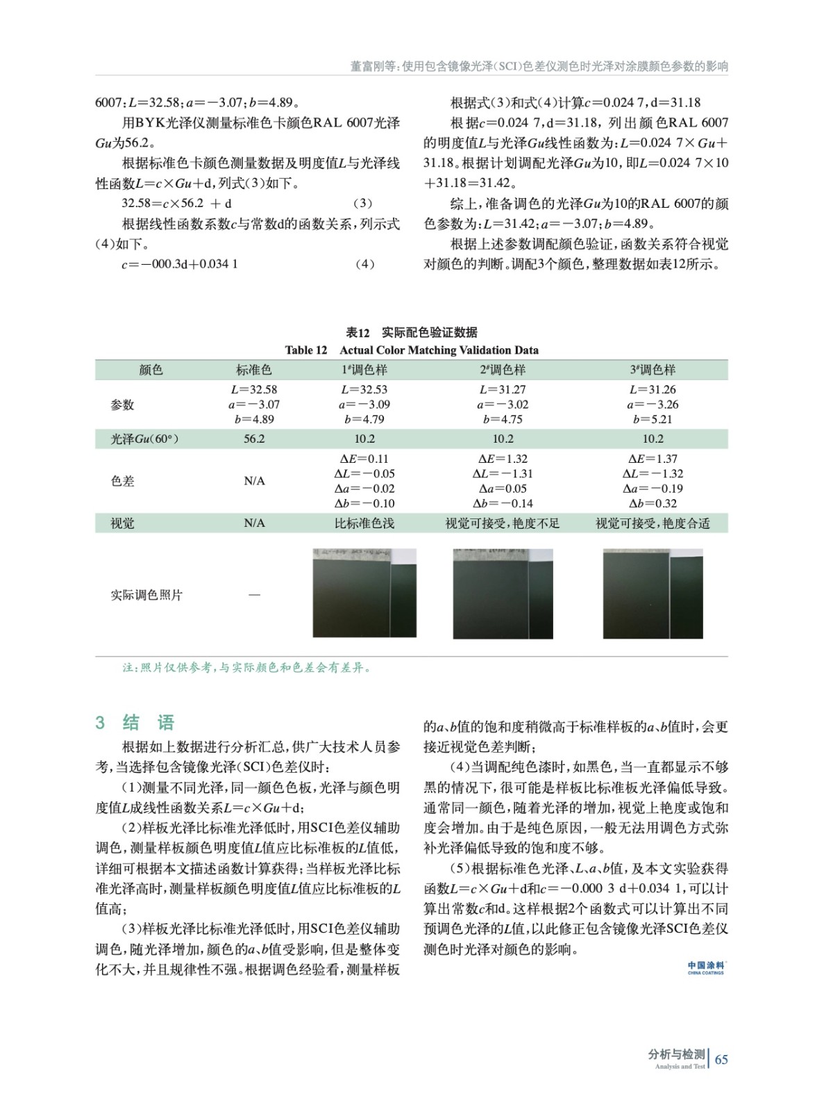 使用包含鏡像光澤(SCI)色差儀測色時光澤對涂膜顏色參數的影響