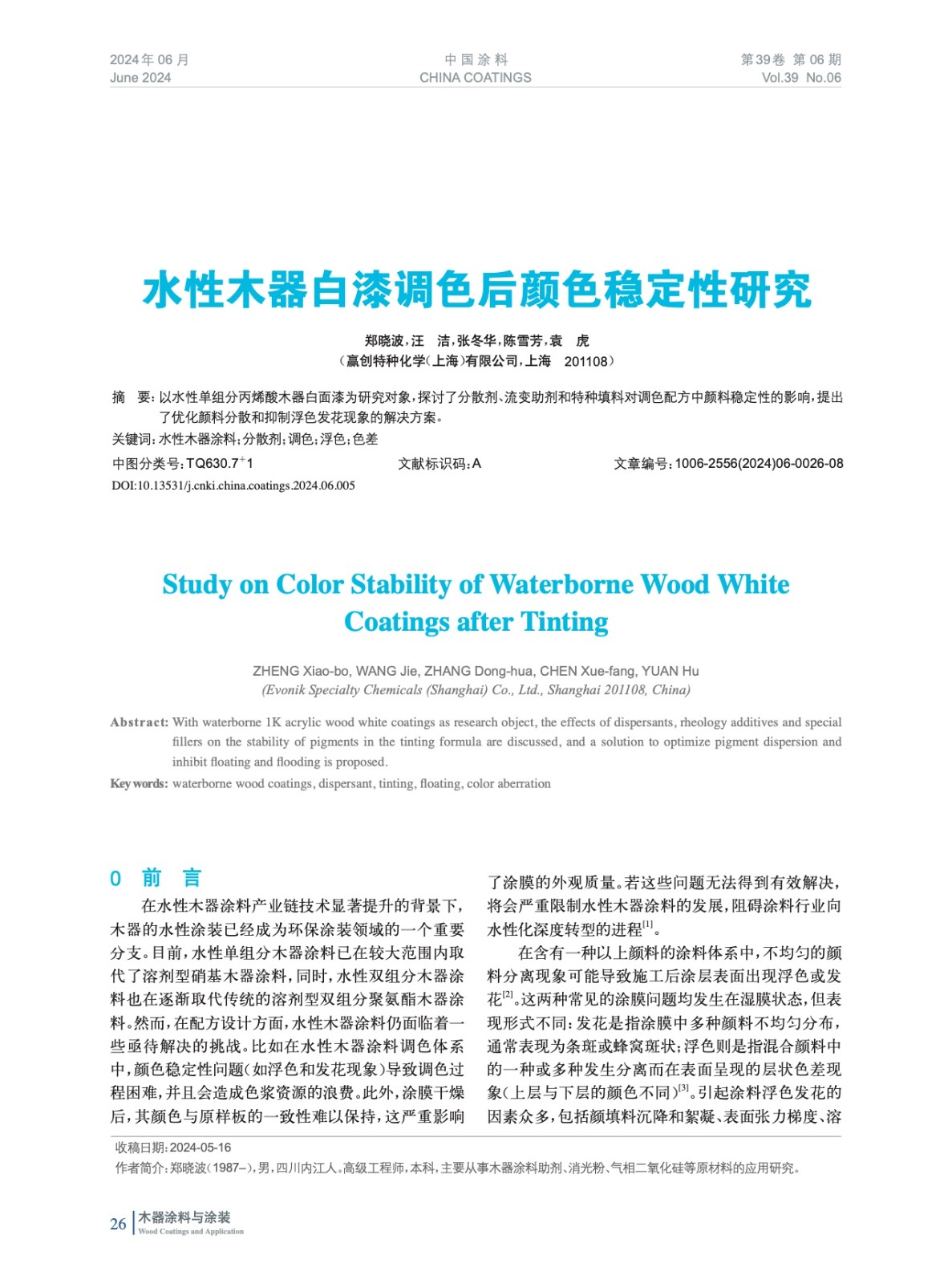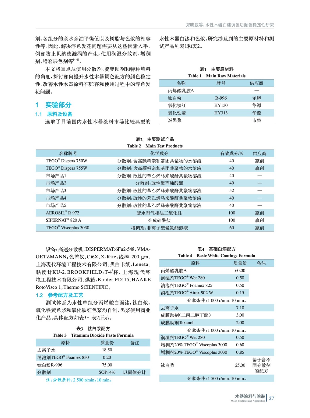 水性木器白漆調(diào)色后顏色穩(wěn)定性研究