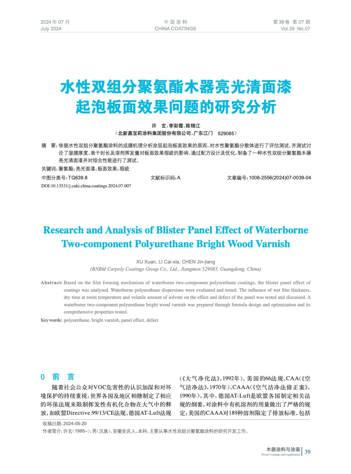 水性雙組分聚氨酯木器亮光清面漆起泡板面效果問題的研究分析