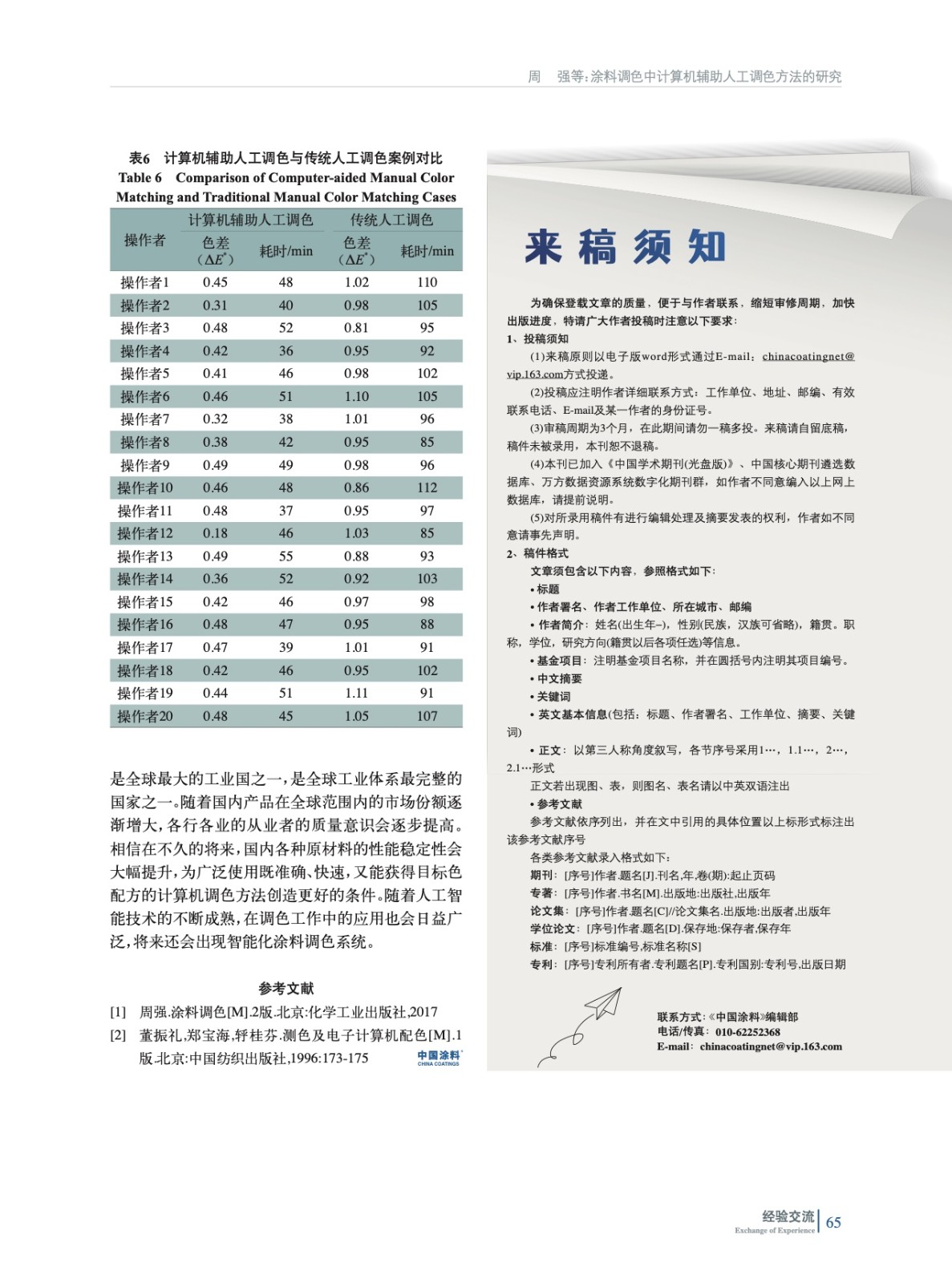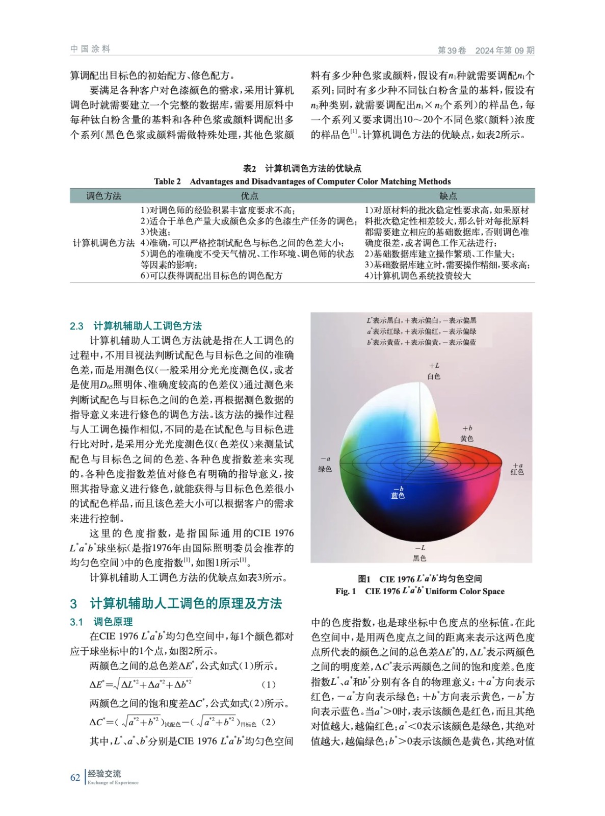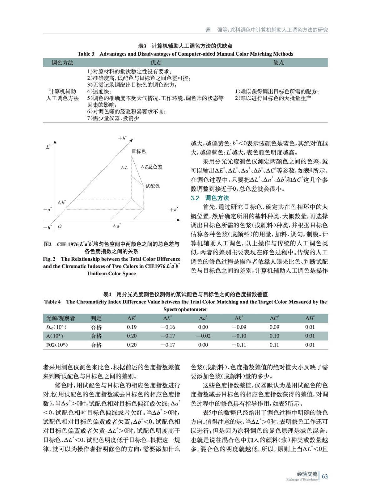 摘要:為了找到一種操作簡單、快速、不受調(diào)色環(huán)境與操作者狀態(tài)影響、不論原材料穩(wěn)定與否都能操作、調(diào)出的顏色與目標(biāo)色之間色差小且可根據(jù)用戶需求控制的調(diào)色方法,通過對CIE 1976 L*a*b*均勻色空間的研究,結(jié)合數(shù)以千計的顏色調(diào)配實驗,找到了一種既簡單、快速,又準(zhǔn)確的涂料調(diào)色方法——計算機輔助人工調(diào)色方法。