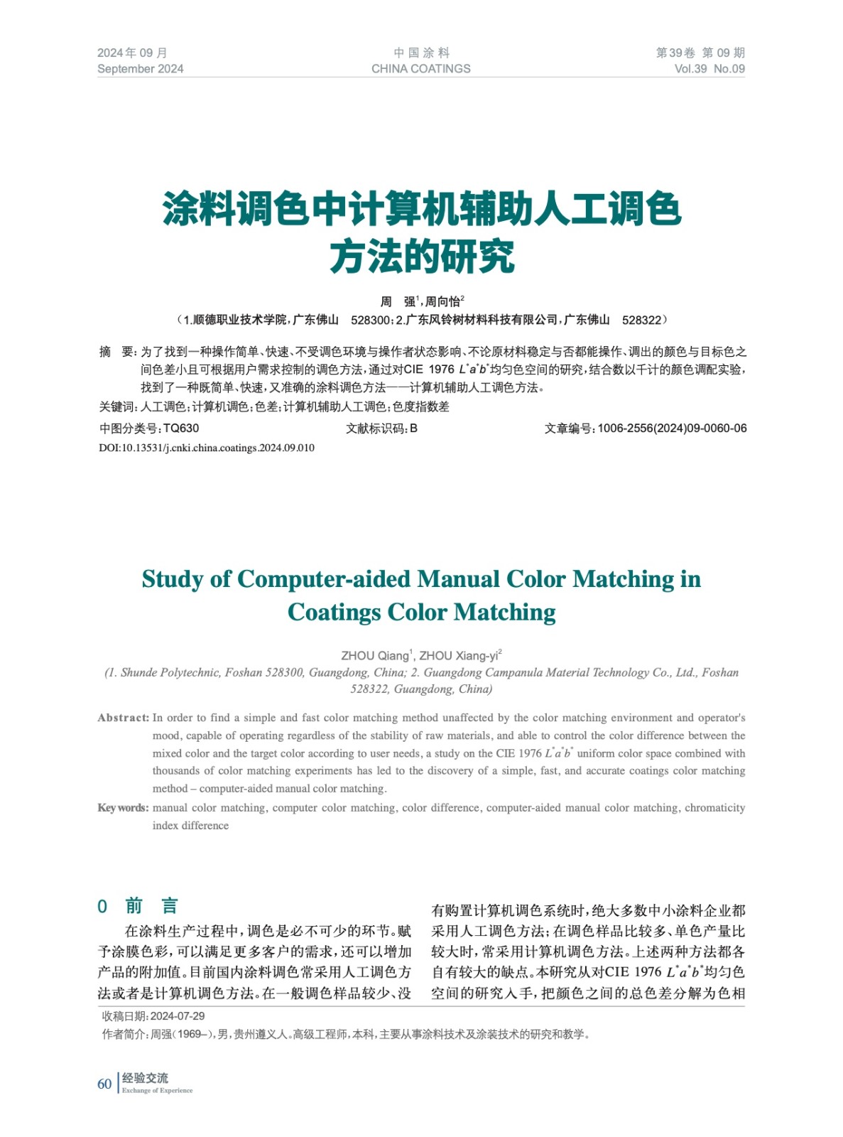 本文系作者@周 強,周向怡 授權(quán)中國涂料網(wǎng)發(fā)表,并經(jīng)中國涂料網(wǎng)編輯,未經(jīng)允許不得轉(zhuǎn)載,如需轉(zhuǎn)載請聯(lián)系chinacoatingnet@vip.163.com