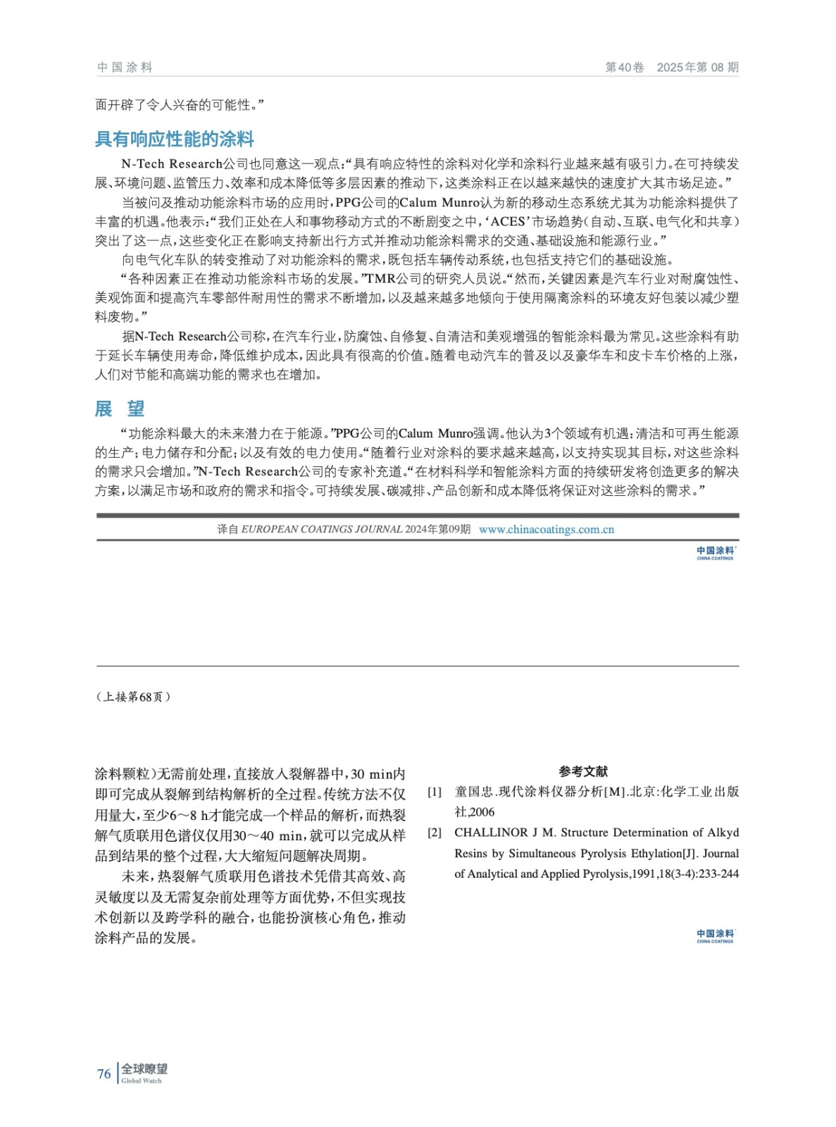 探討了熱裂解氣質聯用色譜(Py-GC/MS)技術在涂料成分解析以及涂膜缺陷分析中的應用,其可分析涂料及原材料的類型、相關單體,另外也可根據裂解碎片得到結構指向,針對涂膜表面缺陷以及涂料現場應用問題進行快速分析與解決。