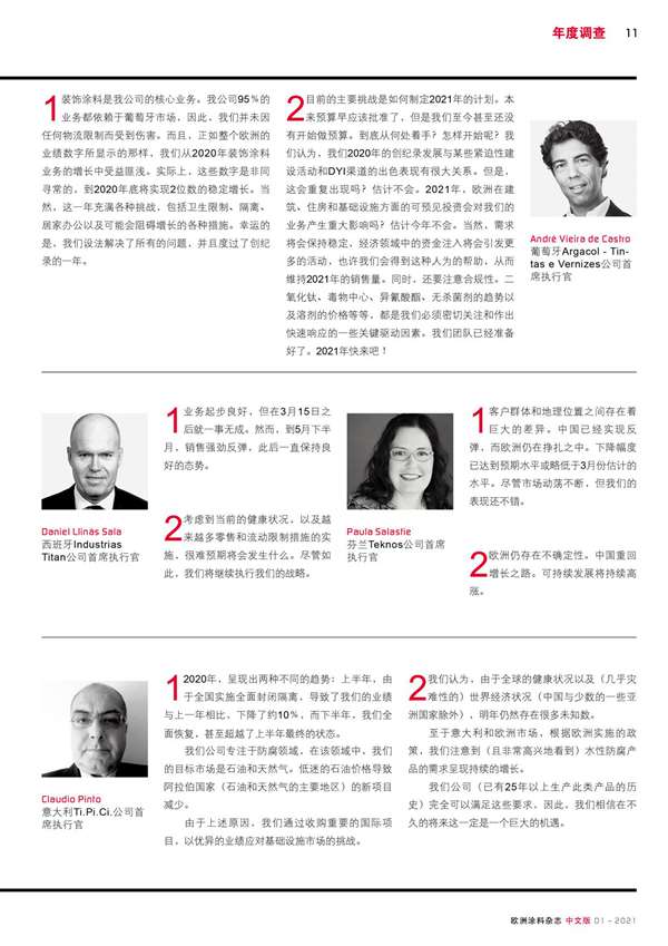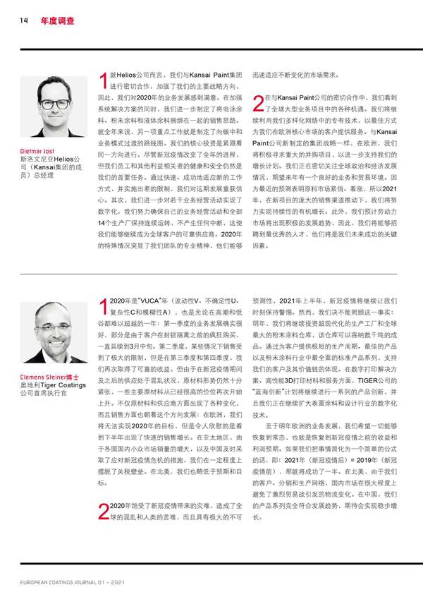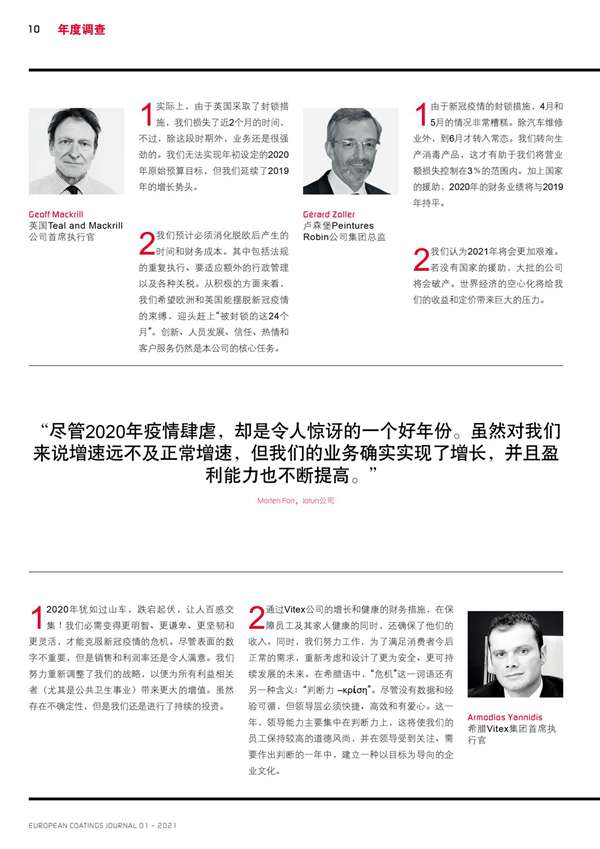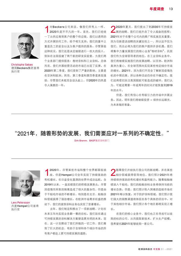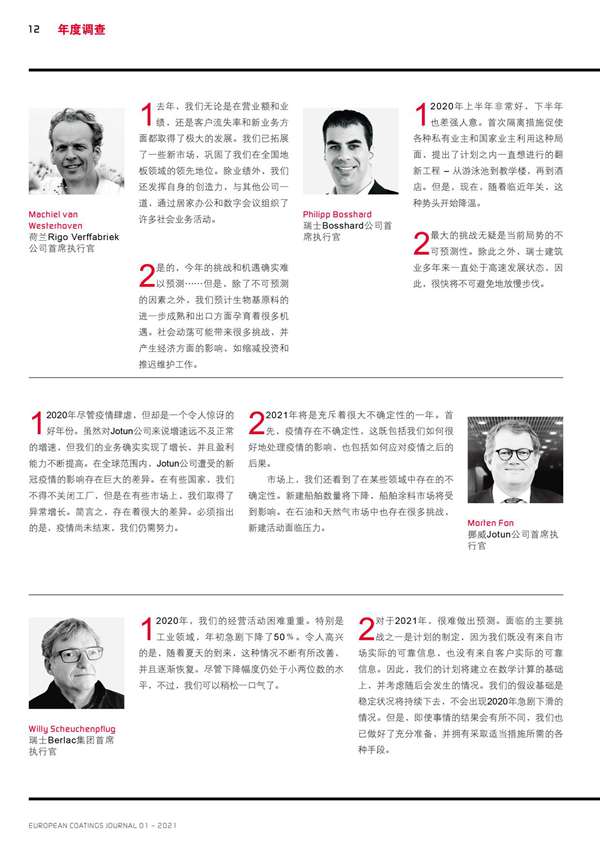 歐洲涂料生產商回顧了2020年的業績,并分享了他們對2021年的展望