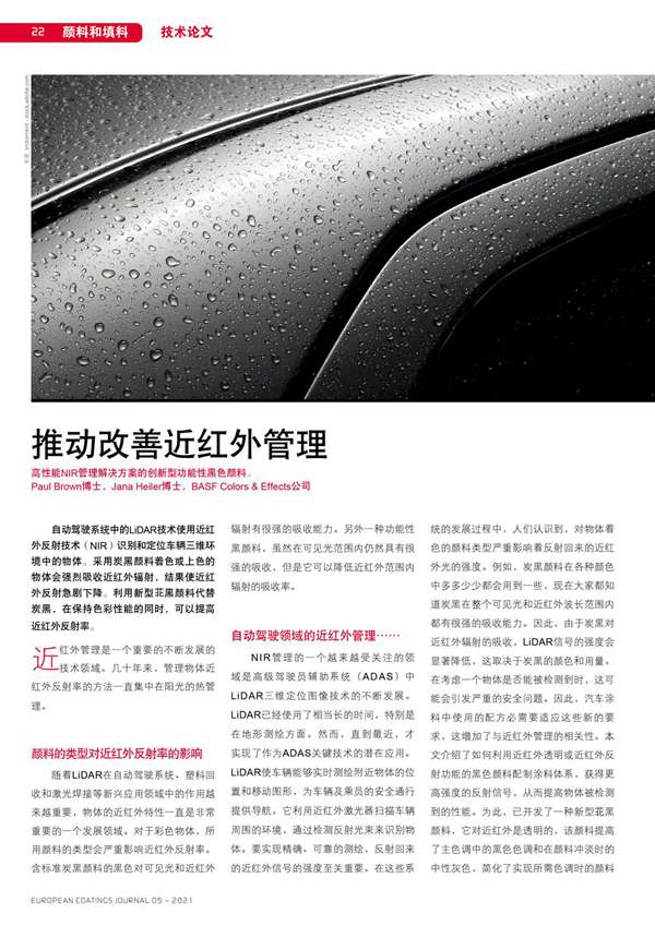高性能NIR管理解決方案的創新型功能性黑色顏料