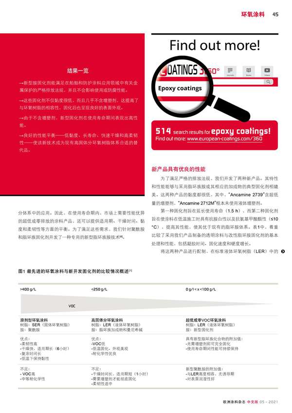 新型胺固化劑符合嚴格的VOC法規,在使用壽命期間表現出良好的性能