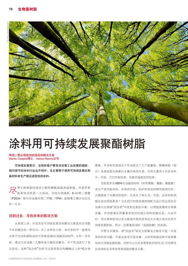 涂料用可持續(xù)發(fā)展聚酯樹脂