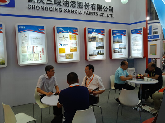 2015年中國國際涂料博覽會(huì)暨第十八屆中國國際涂料展覽會(huì)期間,渝三峽的展臺(tái)設(shè)計(jì)大氣清新,重點(diǎn)突出低碳環(huán)保理念。渝三峽通過展示歷史沿革、產(chǎn)品展示、產(chǎn)品優(yōu)勢、業(yè)績展示等板塊充分展示了公司的發(fā)展變化和取得的輝煌成就?,F(xiàn)場專業(yè)觀眾特別對(duì)渝三峽的水性工業(yè)漆產(chǎn)品表現(xiàn)出極大的興趣,不僅觀看樣品、索取資料,還與公司技術(shù)人員進(jìn)行了深度交流,公司技術(shù)人員的專業(yè)講解得到了現(xiàn)場觀眾的認(rèn)可和贊同。