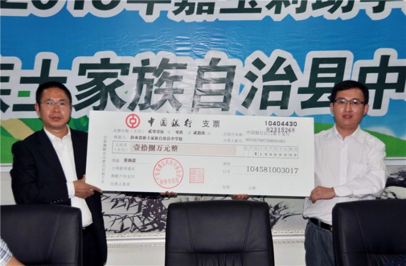 彭水嘉寶莉漆經銷商胡建國總經理也在啟動儀式上發言。他說,自己六年前開始經銷嘉寶莉漆,從零開始,一步一個腳印發展到今天,使嘉寶莉漆在彭水市場獲得了不錯的增長和良好的市場口碑。這也為這次嘉寶莉助學落戶彭中提供了可能。他很慶幸自己選擇經營嘉寶莉。在發言中,他還鄭重承諾:既然嘉寶莉公司有這樣的愛心,作為嘉寶莉的經銷商,他也希望能為家鄉的建設和教育事業做點貢獻。假如有一天,彭水中學需要翻新教室和內外墻,假如彭水中學的學生家里需要裝修或維護,用得上涂料的地方,我愿意直接以廠家進貨價供貨,不賺一分錢,而且保證把質量做到最好。如果這次受助的同學能考上清華、北大,他愿意為他們或他們父母在彭水縣的家免費提供所有涂料和施工,作為對他的獎勵。