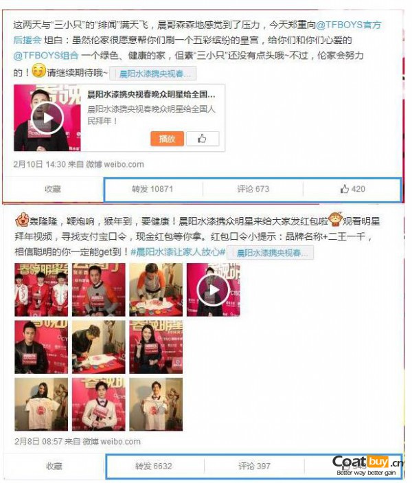 春節期間,晨陽水漆贊助鳳凰娛樂春晚明星會客廳,得到眾多網民的參與和評價,助推自身品牌在微博平臺內的影響力得到迅速增長,成為春晚借勢營銷大贏家。