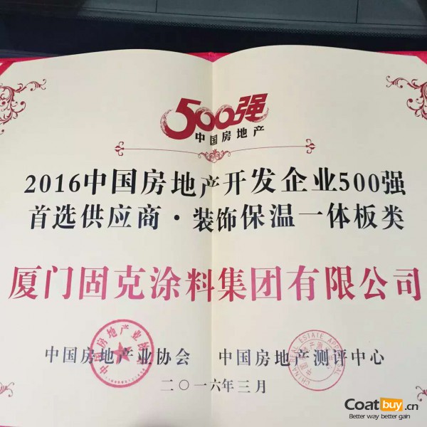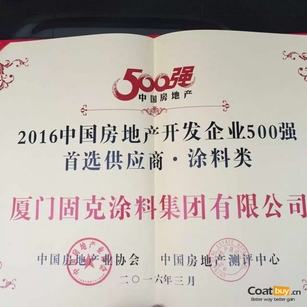 “固克漆”再度蟬聯(lián)500強(qiáng)開發(fā)商首選品牌